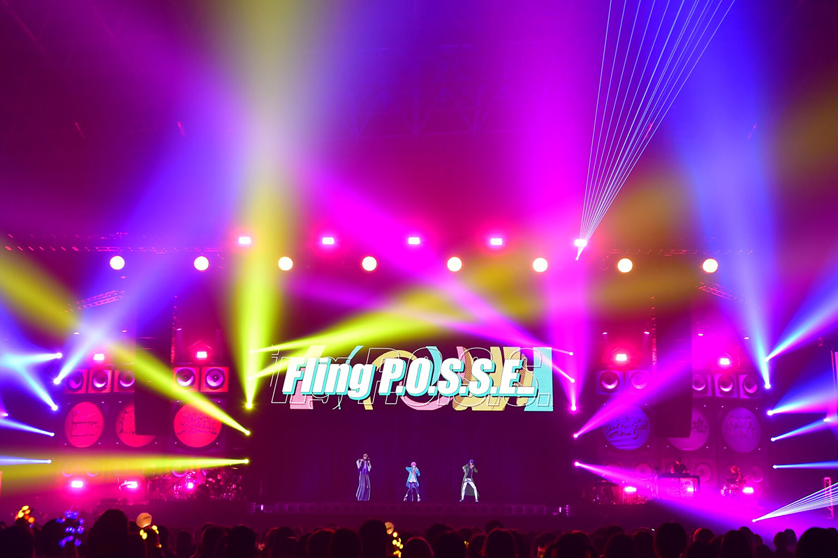 有栖川帝統が「この真剣勝負に勝てねえぞ!」とメンバーに発破をかけたシブヤ・ディビジョン“Fling Posse”は、「とりま Get on the floor」から「Shibuya Marble Texture -PCCS-」と続け、Fling Posseの持つポップな色合いを、パフォーマンスとしても観客に印象付けた。