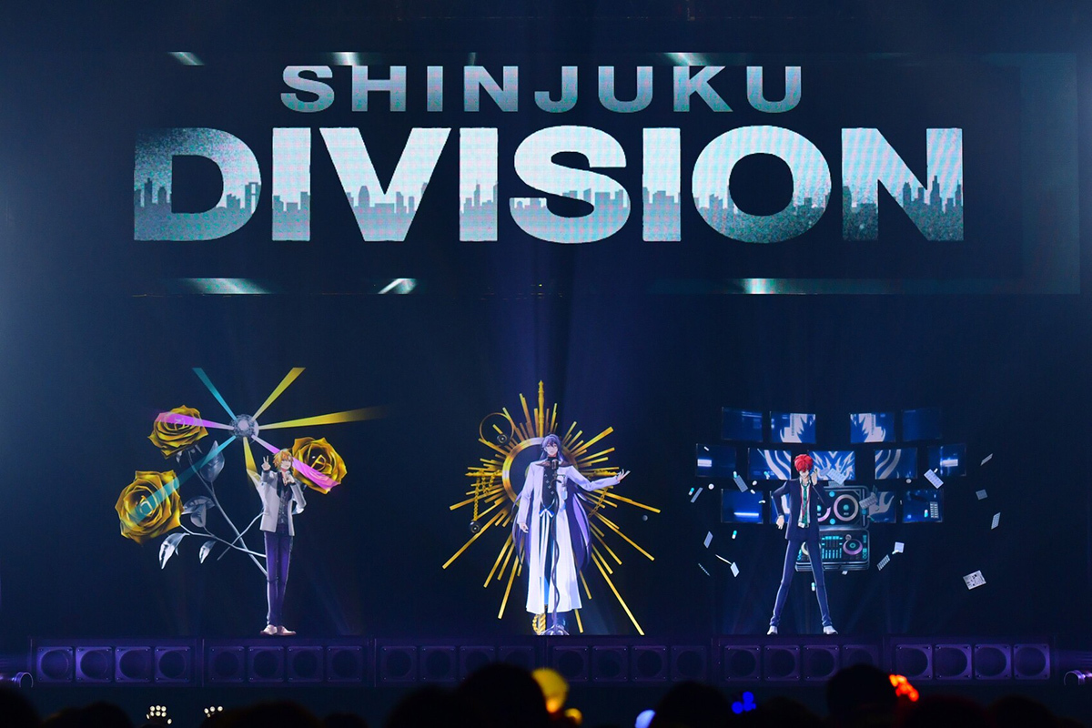 ジャケットを着ないと女性恐怖症を発症してしまう伊弉冉一二三が、ジャケットを着ないでステージに登場してしまうが……という寸劇で始まったシンジュク・ディビジョン“麻天狼”のソロパートは、メロウな「シンクロ・シティ」からハードな「Shinjuku Style ~笑わすな~」へと流れ、その二面性を形にする。