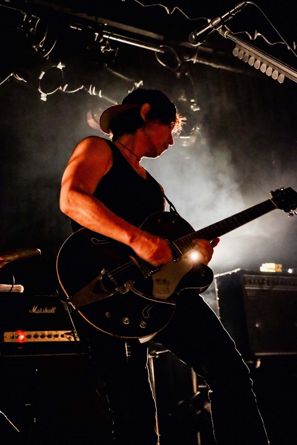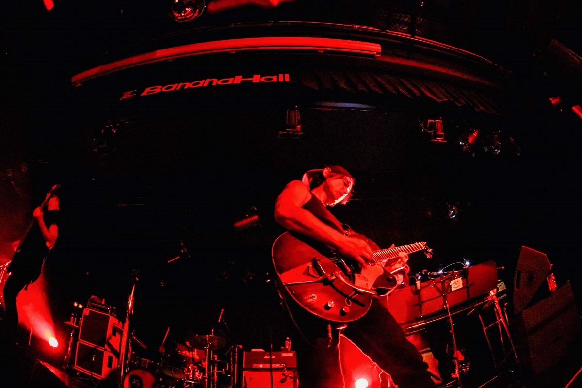 今のバンド内のムードの良さがうかがえるメンバー紹介を経た後半戦は、時代に痛烈に訴えかけるメッセージソング「Stealth」、ヘヴィなリフの嵐に理性をぶっ壊される「アンドロイドルーシー」でBananaHallは狂乱の渦へ。フロアの熱量がピークに到達しようが一切手を緩めないSHERBETS御一行は観客の胸にともった炎に容赦なくガソリンを注ぐように「LADY NEDY」をぶち込んでいく。クライマックスは「きれいな血」~「Happy Everyday」とじわじわ加速度を増していき、ラストは4人のキレキレのソロパートでも魅せたJJD=「ジョーンジェットの犬」で息もつかせぬエンディングに。