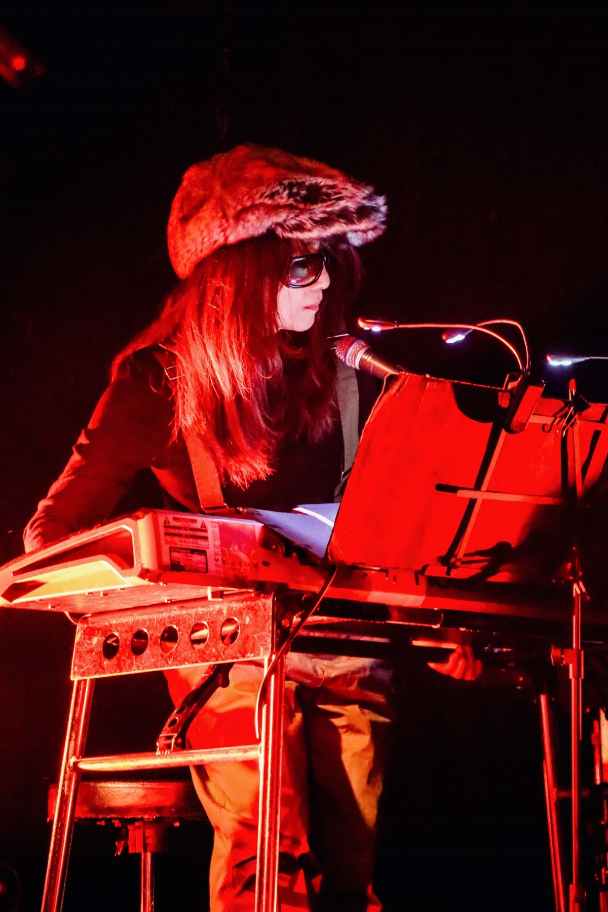 満場のBananaHallにいつもの「Over the Rainbow」のSEが流れるや、大きな拍手で出迎えるオーディエンス。ブルーの照明に包まれメンバーが登場し、爆発寸前の期待感を焦らすかのような「Smoothie Glider」で、じりじりと深淵に引きずり込む幕開けに。そんな緊張感を切り裂き、「ハロー、大阪エンジェルス。レッツパーティー!」と“ベンジー”こと浅井健一(Vo, G)が開口一番、エッジィなギターもろとも「HIGH SCHOOL」へ突入。一気に解き放たれた熱気はあっという間に急上昇、たった2曲で唯一無二の静と動を突き付けた後も、その躍動は止まらない。福士久美子(Key, Cho)のシンセが楽曲の世界観を拡大する「RUSH」でも、急転直下のダイナミズムで観る者を圧倒する。