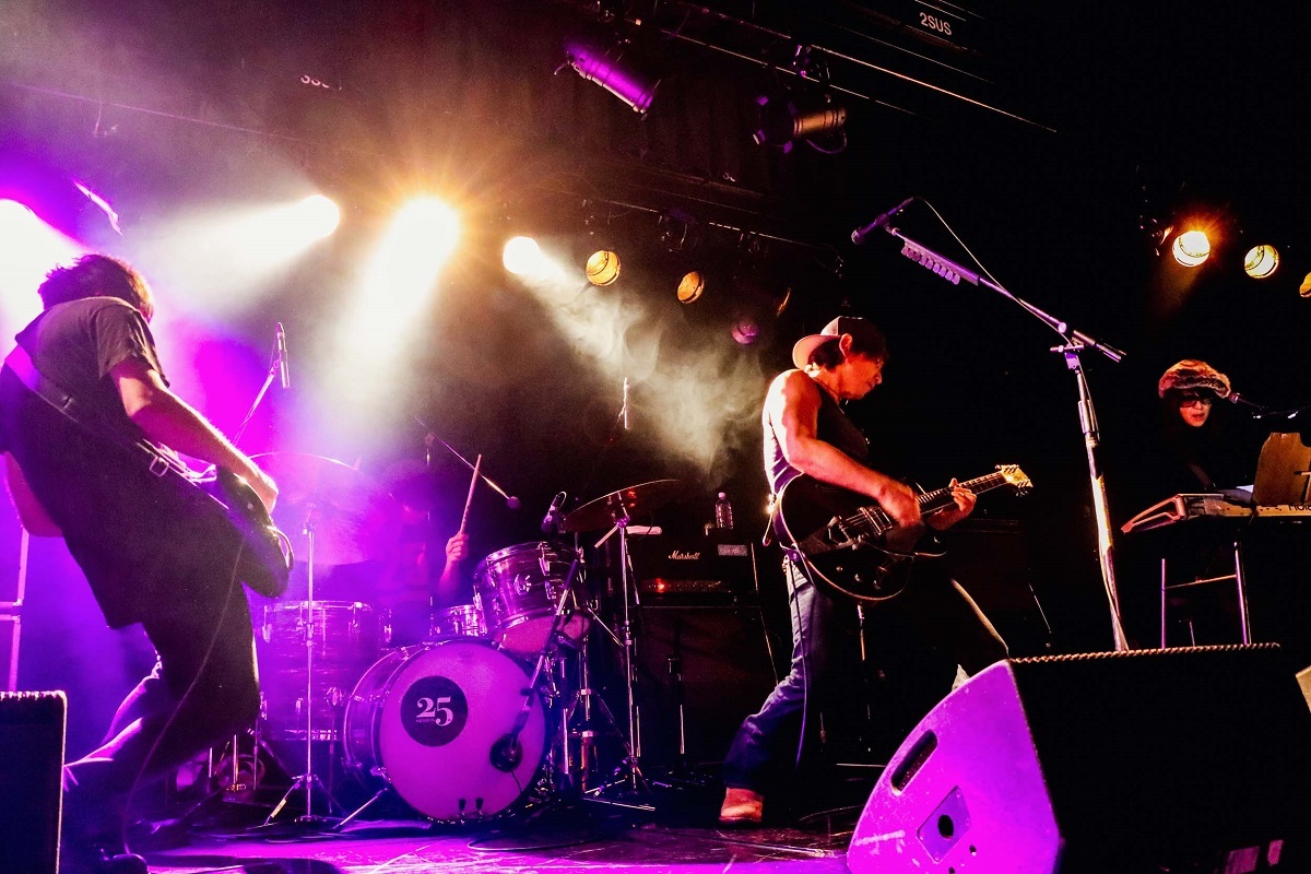 「今日は観に来てくれてありがとう! 朝まで騒ぐぜ」とベンジーが告げ、サイケデリックでクールな「COBRA HEAD」で強烈な轟音を浴びせかければ、ビリビリと体に伝わる振動がライブでしか味わえないエクスタシーを呼び起こす。それに一役買っていたのが、負傷により本ツアーには不参加となった仲田憲市(B)に代わりサポートベーシストを務めた宇野剛史だ。中学生時代にBLANKEY JET CITYに憧れベースを手にし、かつてART-SCHOOLにも所属していた彼が、SHERBETSの多彩な楽曲群を外村公敏(Dr)と共に支え、バンドに新たな刺激をもたらしていた。