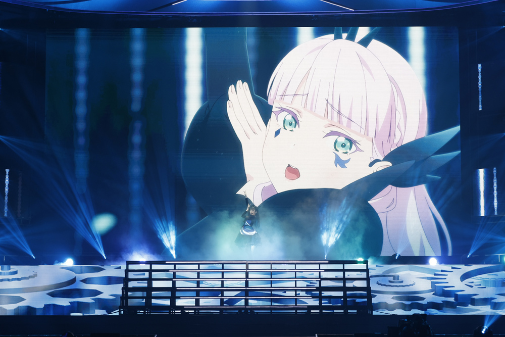 アニメの劇中ライブシーンと共に繰り広げられるマルガレーテの「エーデルシュタイン」は、前半のライブと同様に力強くクールな歌とパフォーマンスで場内の空気を凛と張り詰めさせていく。