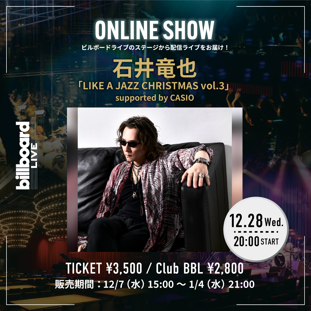 12月28日(水)にビルボードライブ横浜で開催される『石井竜也「LIKE A JAZZ CHRISTMAS vol.3」』公演2ndステージの生配信が決定した。