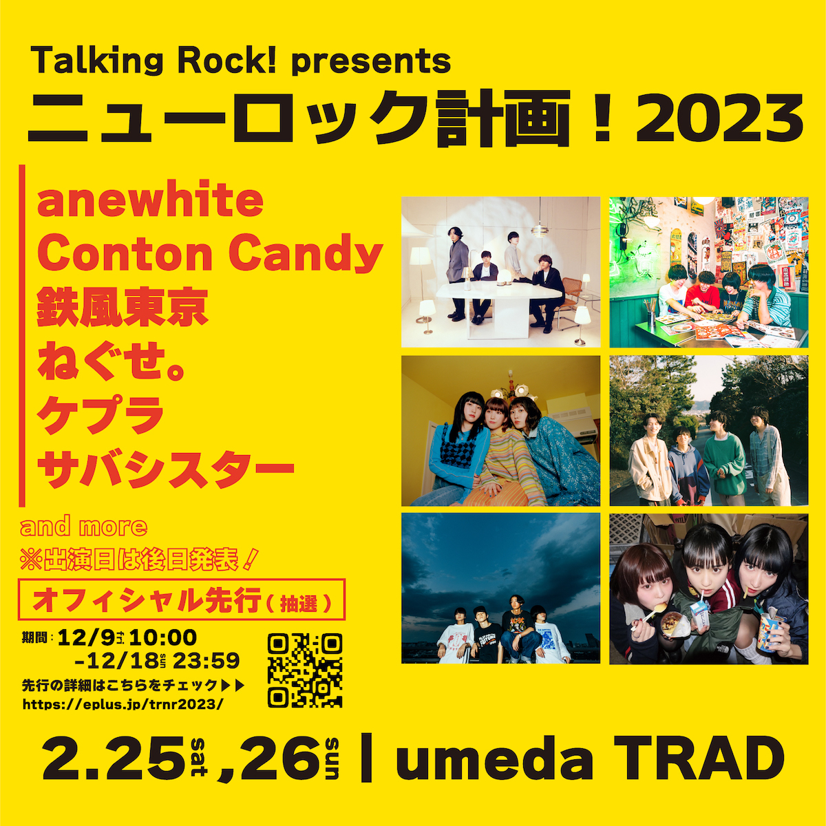 Talking Rock!が、その年の大躍進候補として注目するアーティストを招いて行うオムニバスライブイベント『ニューロック計画!』を2023年度も開催することが決定した。