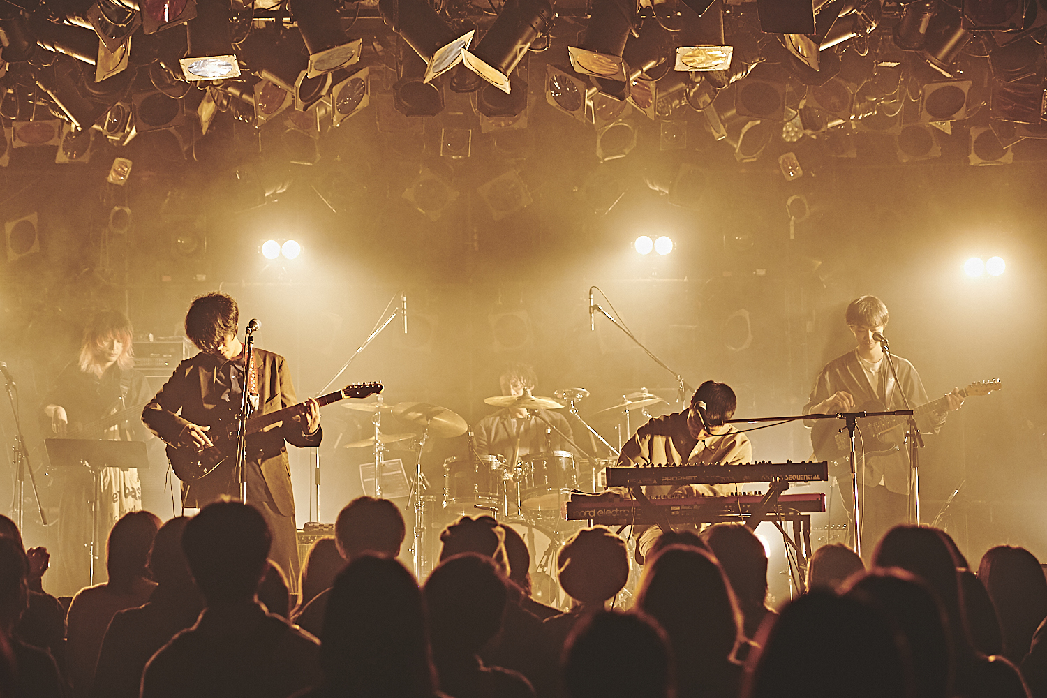 約3分に及ぶ突然のモノローグでまたも空気を一変させつつ、ミラーボールが灯る幻想的なムードと浮遊感のあるサウンドに乗せて聴かせた「SCHOOL」など、その後も目に焼き付くような演奏を繰り広げる4人。