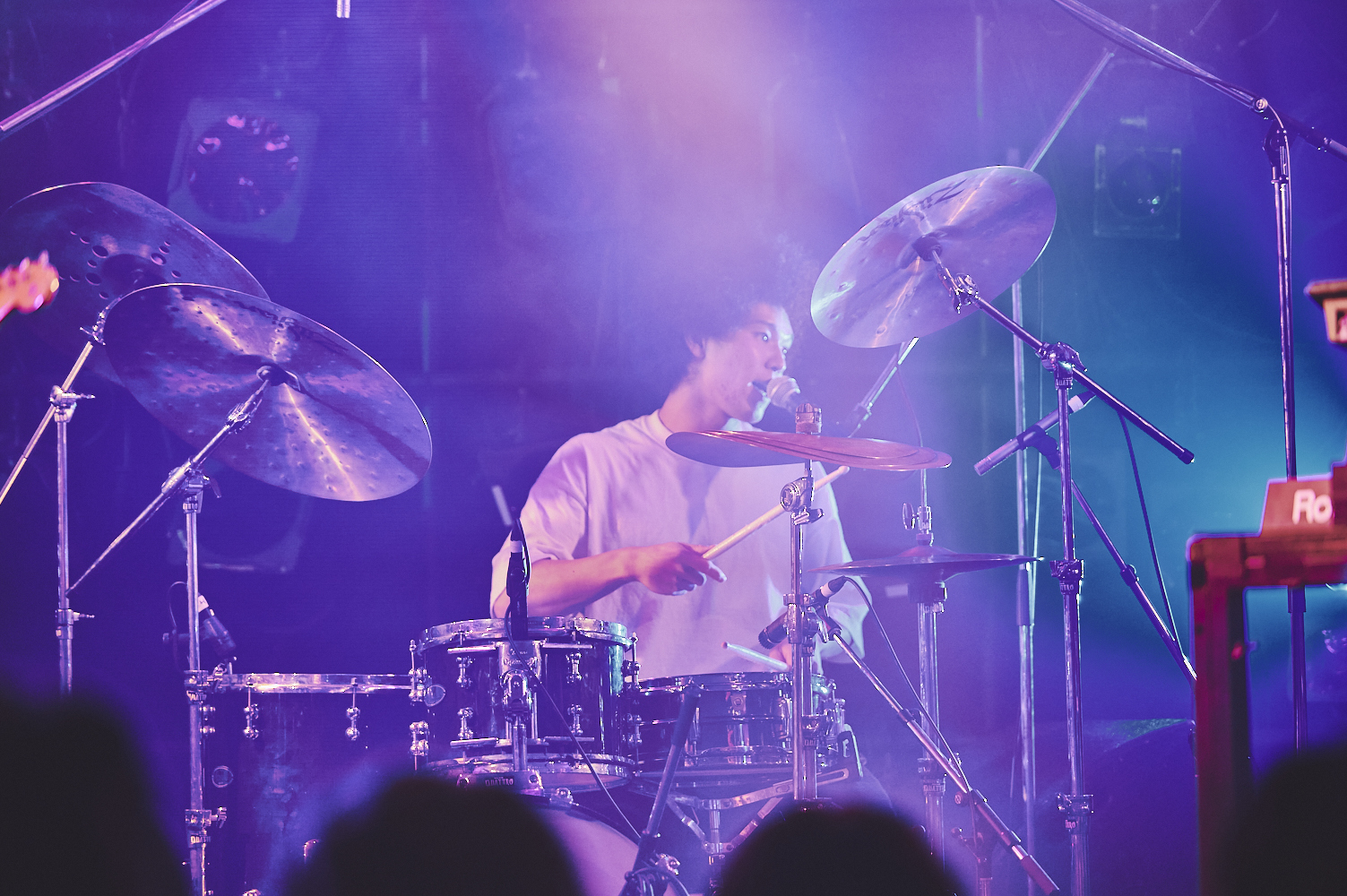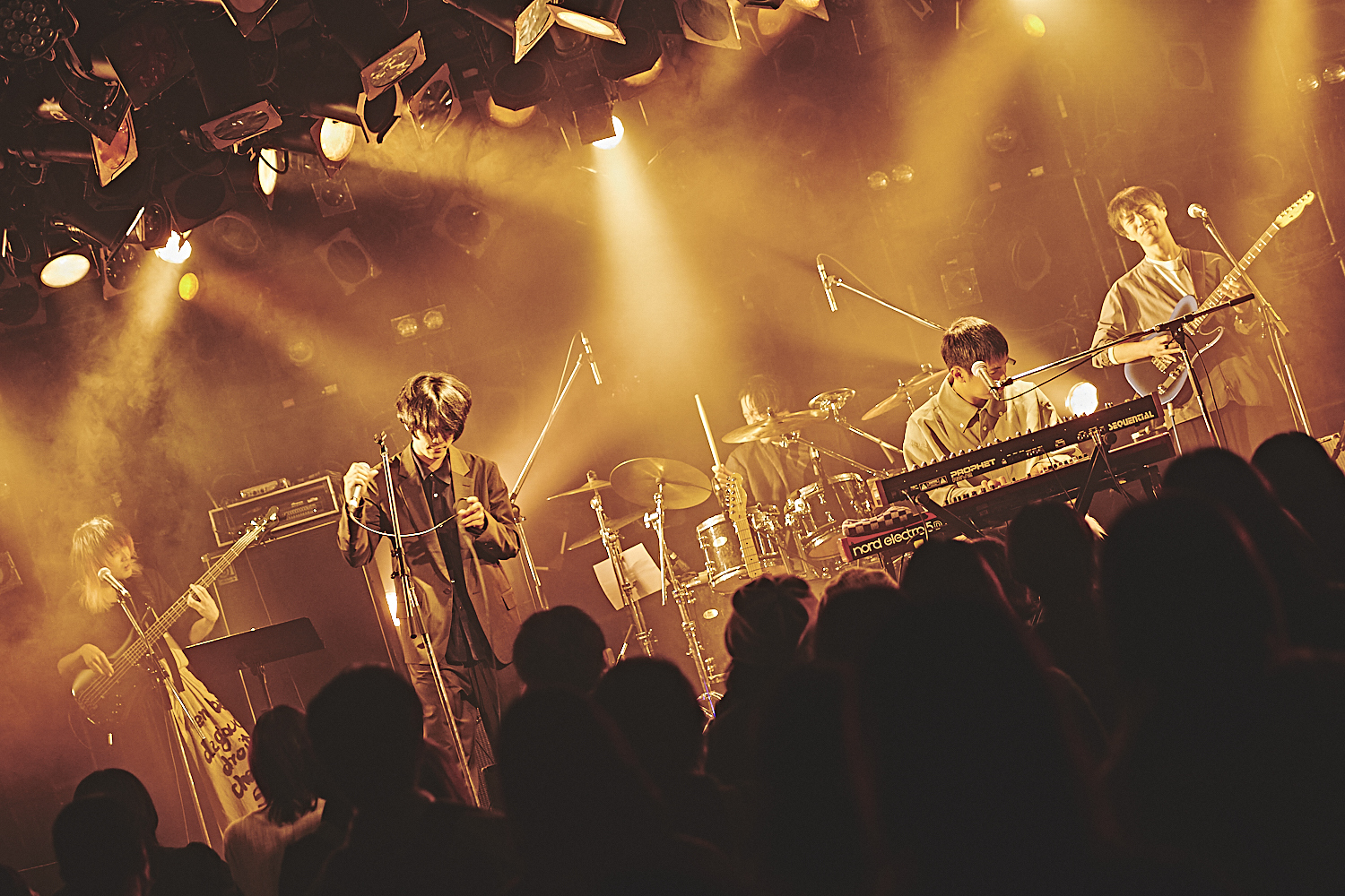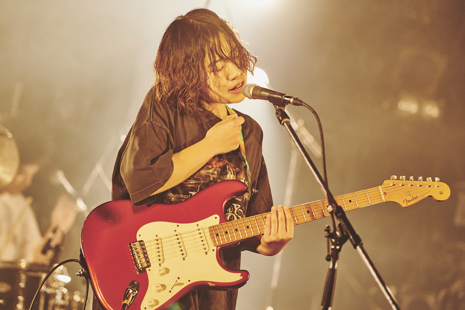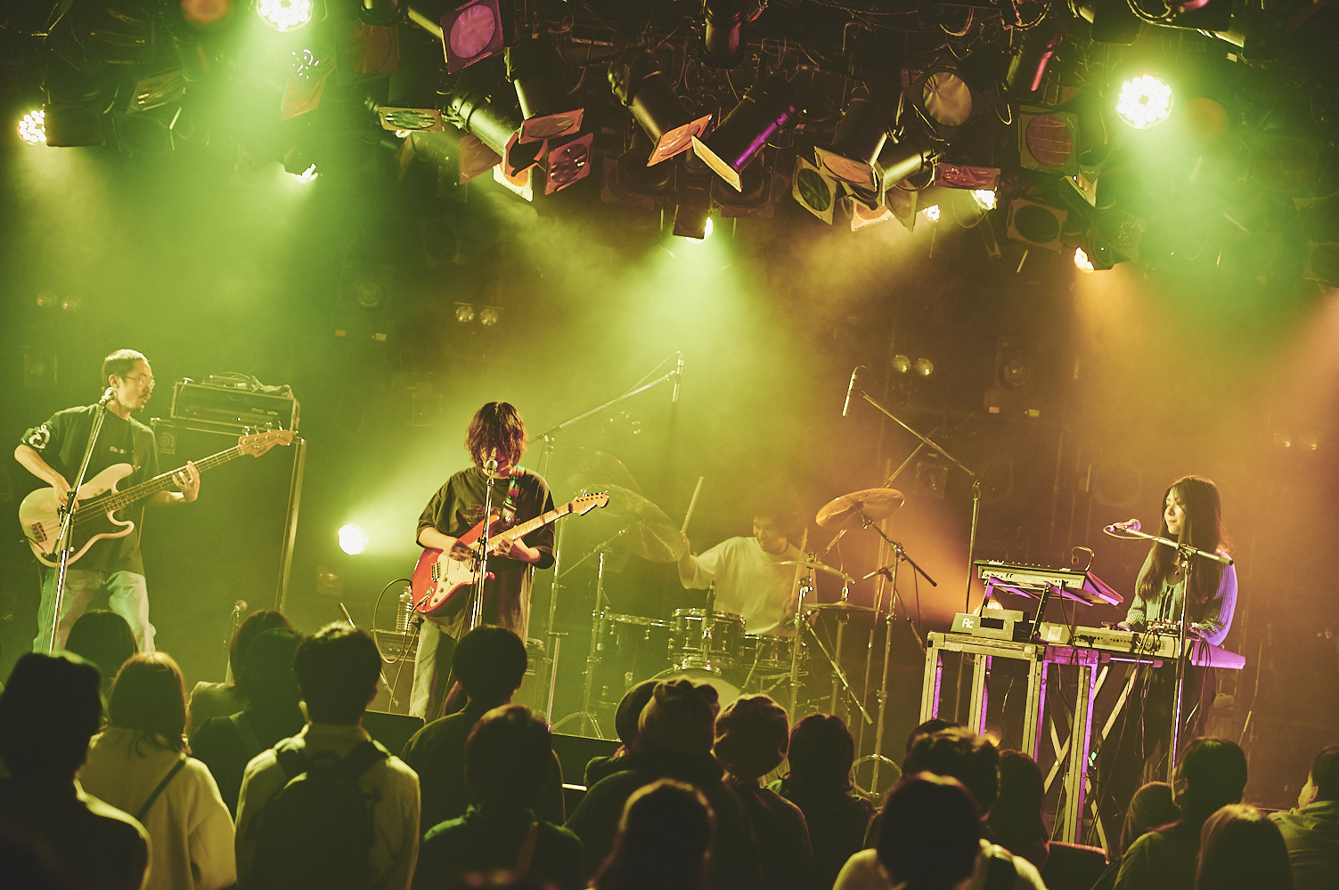 スローバラードの「またたき」では、音の隙間を楽しむような奥ゆかしいアンサンブルとその中で気持ちよく舞う甫木元のハイトーンに会場の誰もが息を呑む。「コーラ・バナナ・ミュージック」になれば、菊池のサイケデリックな鍵盤に耳を奪われ、「Over Now」になれば、漂うデイドリーム感にうっとりしてしまったりと、聴く側はただただ高揚するばかりなのだけれど、当の本人たちは至ってマイペースに、以前よりもずっと落ち着き払った、それでいて熱いパフォーマンスを見せていたのが印象的だった。10月に大手町三井ホールで自身初のワンマンライブを成功させたこと、そしてメジャーデビューが決まったことがやはり大きく作用しているのだと思う。