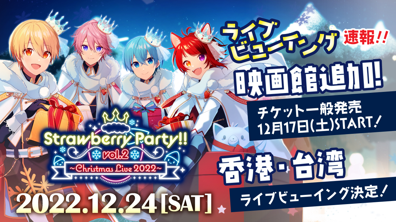 2022年12月24日(土)に千葉・幕張メッセで開催されるバーチャルライブ『Strawberry Party!! Vol.2 ~Christmas Live 2022~』のチケット一般発売が本日12月11日(日)21時よりスタート。
