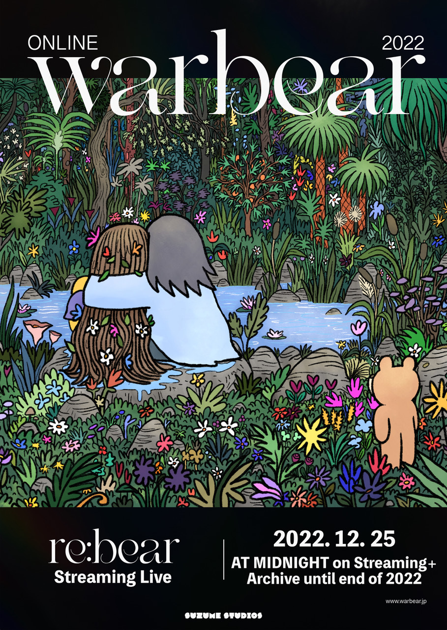 この配信ライブは、10月11日に渋谷WWWで4年ぶりに開催された単独ライブ『re:bear』となっている。2018年に全公演即日SOLD OUTとなったツアーに続き、今回の公演も応募多数により即日SOLD OUT。当初は一夜限りの予定だったが、多くの落選を受け、急遽追加公演を発表。追加公演も即日売り切れという人気の公演となった。配信ライブを熱望してくれている多くの声が届き、warbearと親和性のあるクリスマスからの配信が決定した。そして、残りわずかとなった2022年を最後までみんなと寄り添って居られればというwarbearの想いからこの配信期間となった。