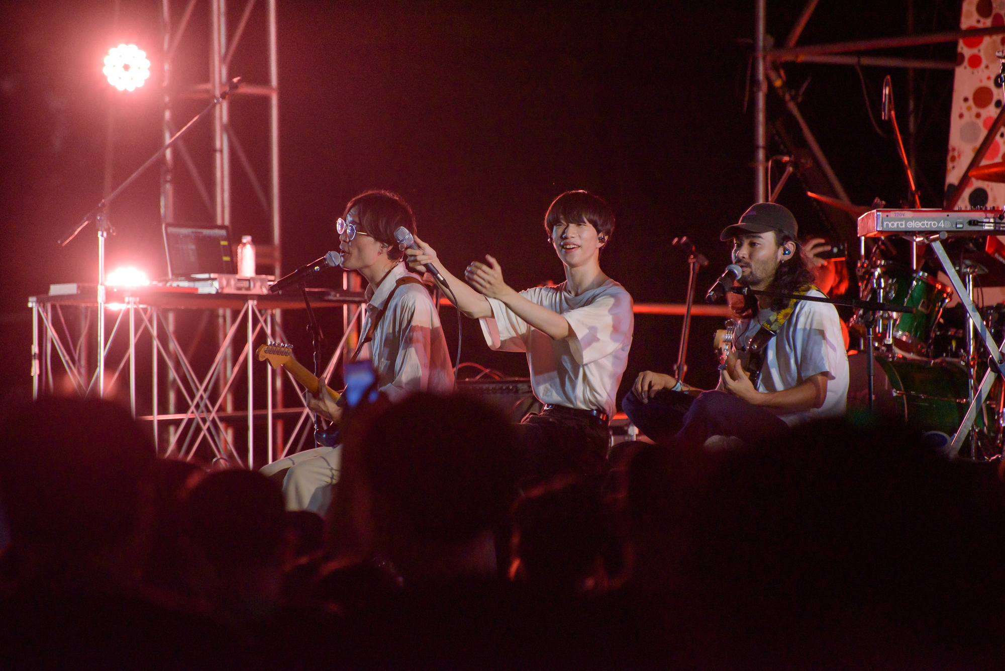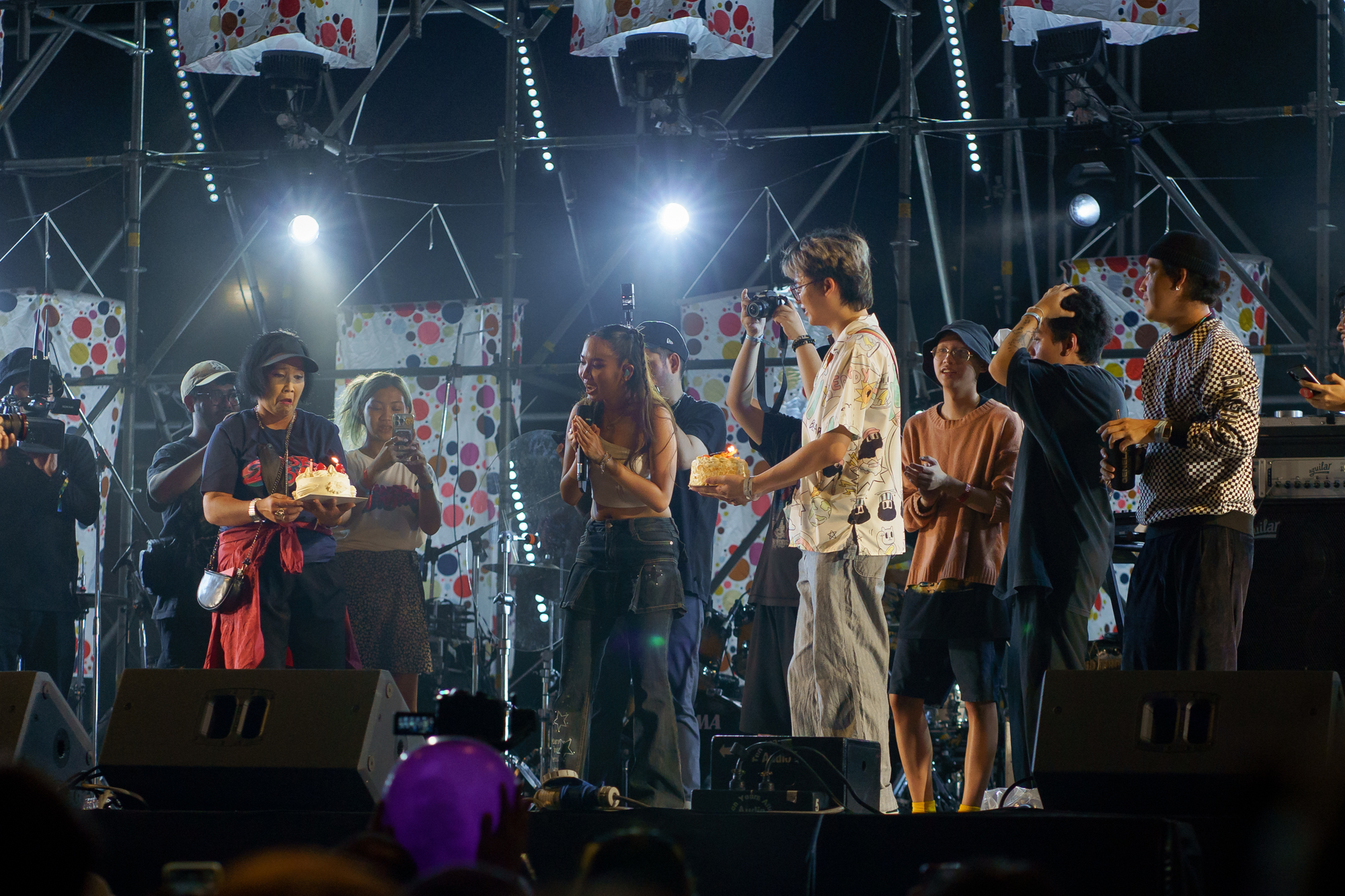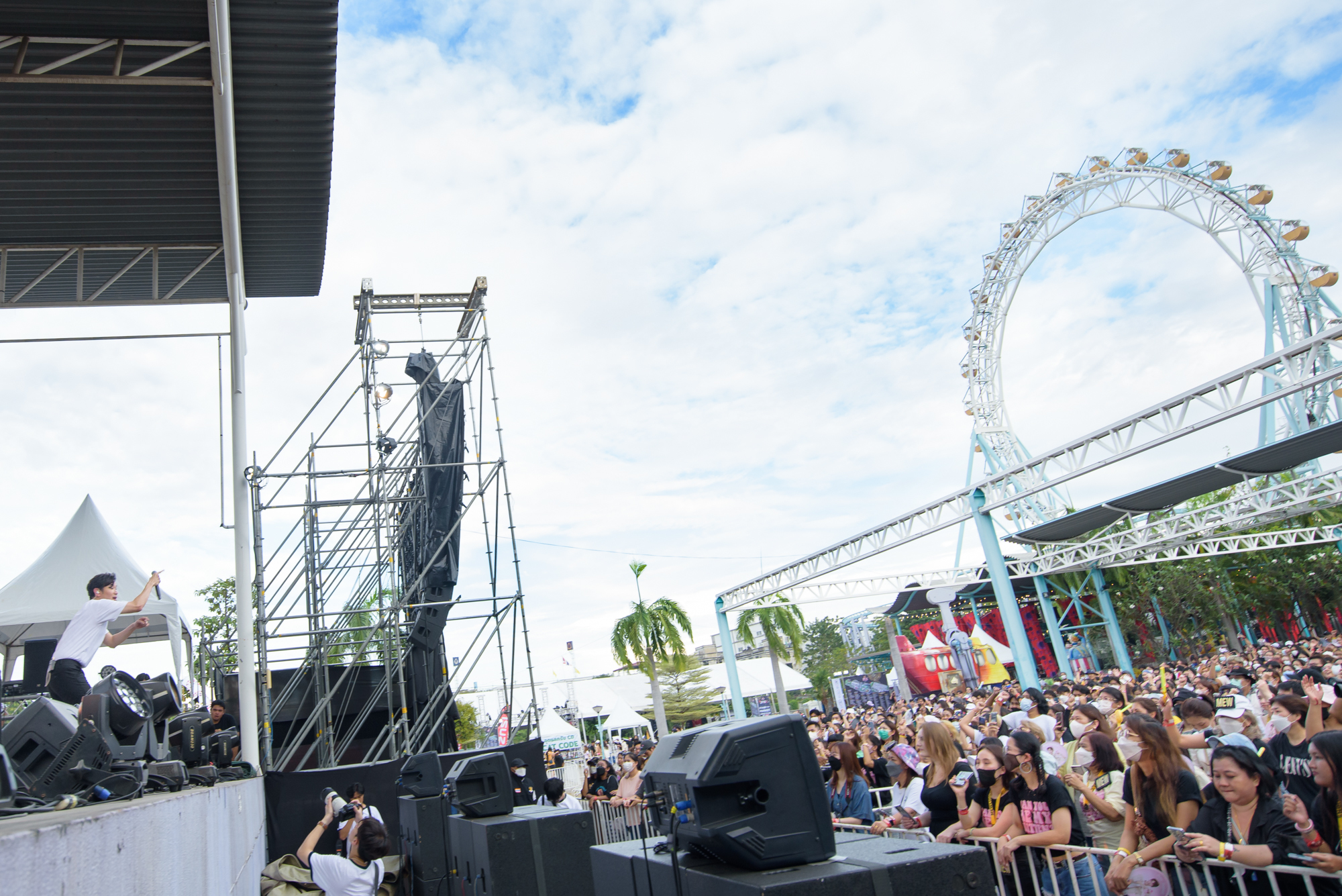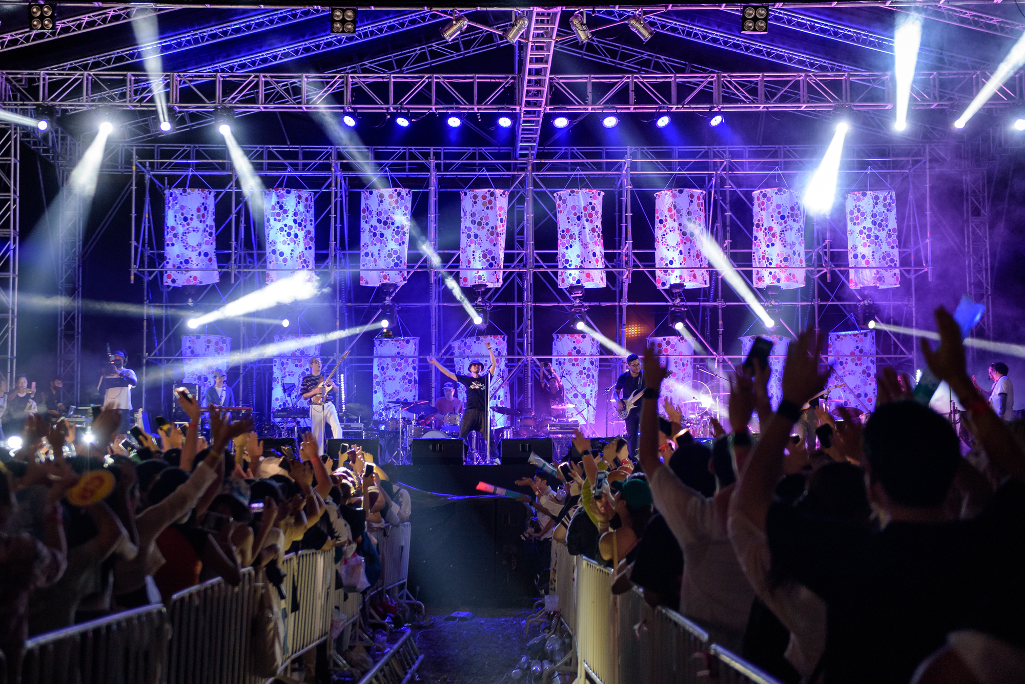 タイ国内アーティストがメインの『CAT EXPO』ですが、海外アーティストとして、日本のLUCKY TAPESとThe fin.が出演。先のトゥックさん曰く、多くのタイの人にとって、日本や日本の音楽は興味の対象で、コロナ以降の最初の海外旅行は日本という人も多いとのこと。どちらのアーティストもタイインディーファンにとって親しみがある存在で、過去のタイでのライブの評判から、リスナーが求めているだろうということでブッキングされたそう。LUCKY TAPESのステージでは、ステージの前ヘリにメンバーが腰掛けて演奏する「MOOD」に、オーディエンスがスマホライトを揺らして応えるという、日本と同じロマンチックなムードに。一緒に日本語で歌う声も聞こえて驚きました。