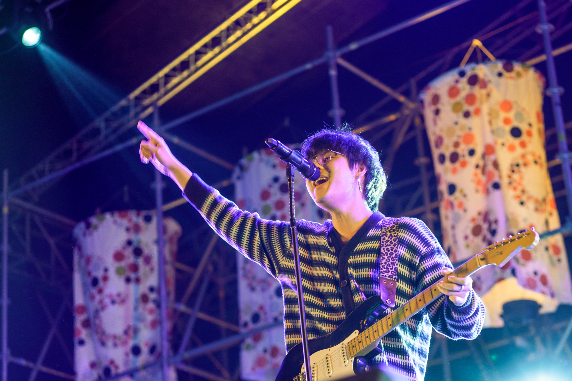 私がこのステージ4で楽しみにしていたのアレック・オラチ(Alec Orachi)。音源を聴いてMVを観て、何者なんだろうと気になっていました。陰気だけど何だか落ち着くサウンドで、中毒性が高いんです。すっかり日が暮れて青い照明の中、線の細いアレック・オラチが浮かび上がる。怪しげで最高。実際のライブはスリーピースで、もう少し心のドアが開いている感じがあり、一度観ただけでは余計に謎が深まったような。D.A.N.の櫻木君(櫻木大悟、Gt.Vo.Syn)がリミックスを手がけたこともあるので、今後の更なるコライトなど期待。覚えていて欲しい名前です。
