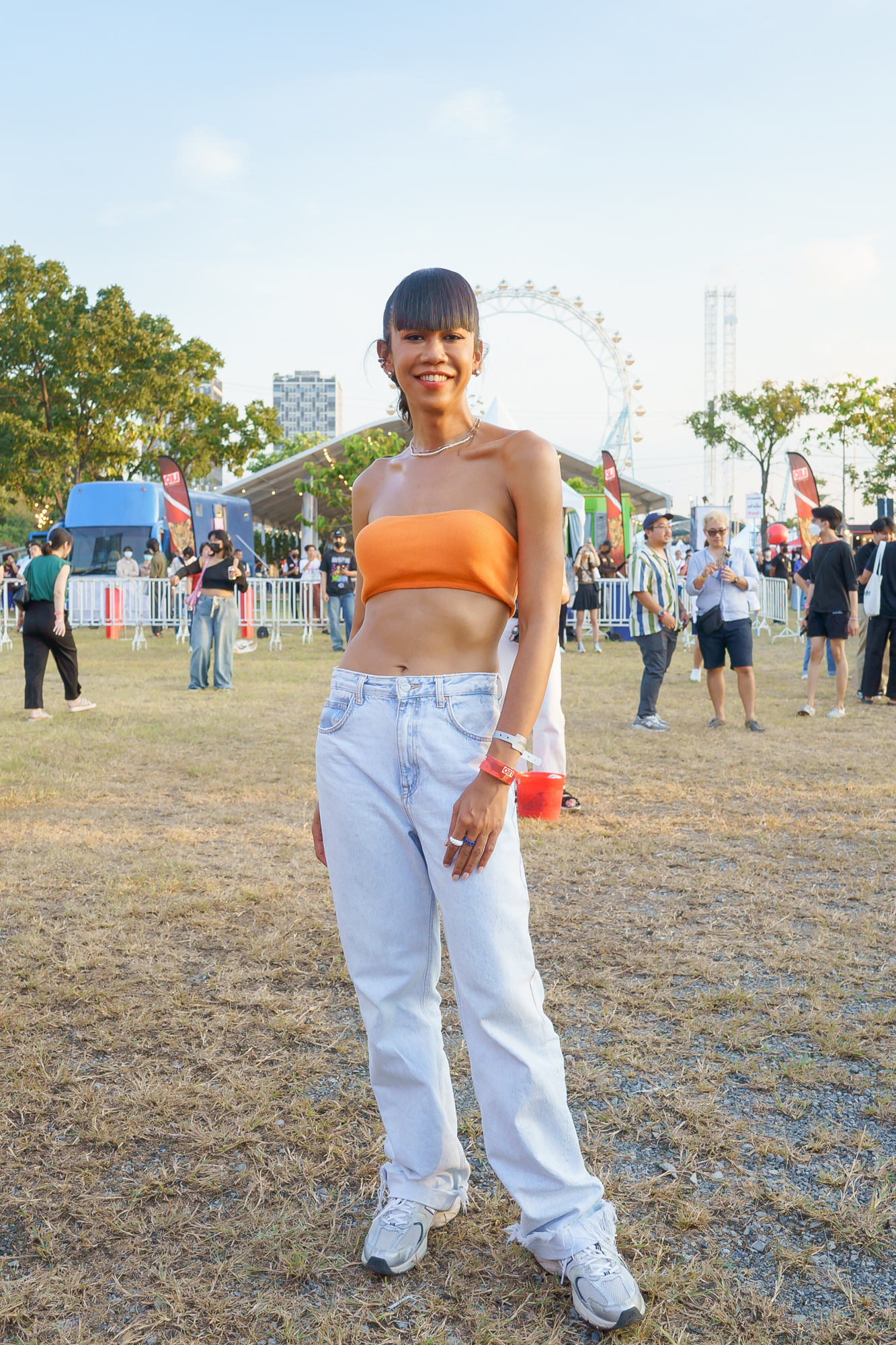 お客さんは遊園地というロケーションもあって、アウトドアファッションやいわゆるフェスファッションのような非日常なものではなく、カジュアルファッションが多い印象。スカートをオシャレに着こなしてるちょっとモードなボーイも。会場で買ったアーティストTシャツを着ている人もたくさん。すぐ着たいよね。分かる!