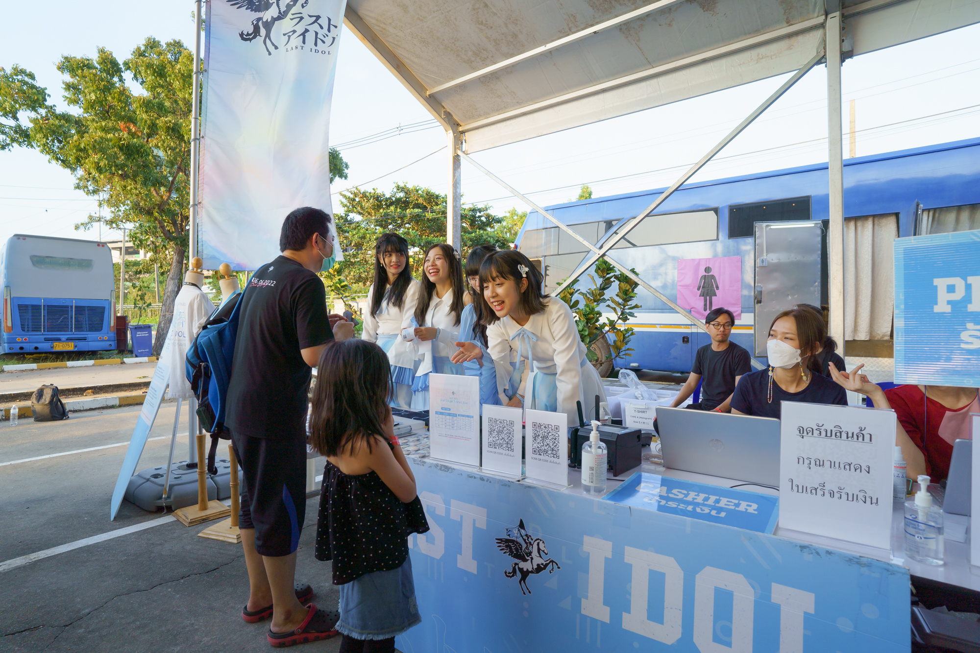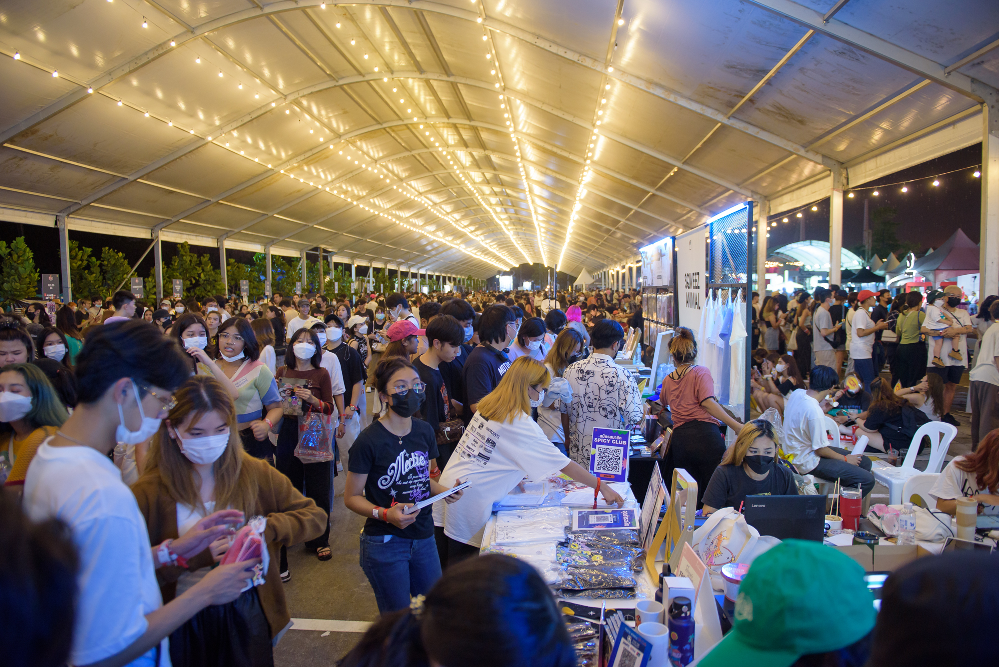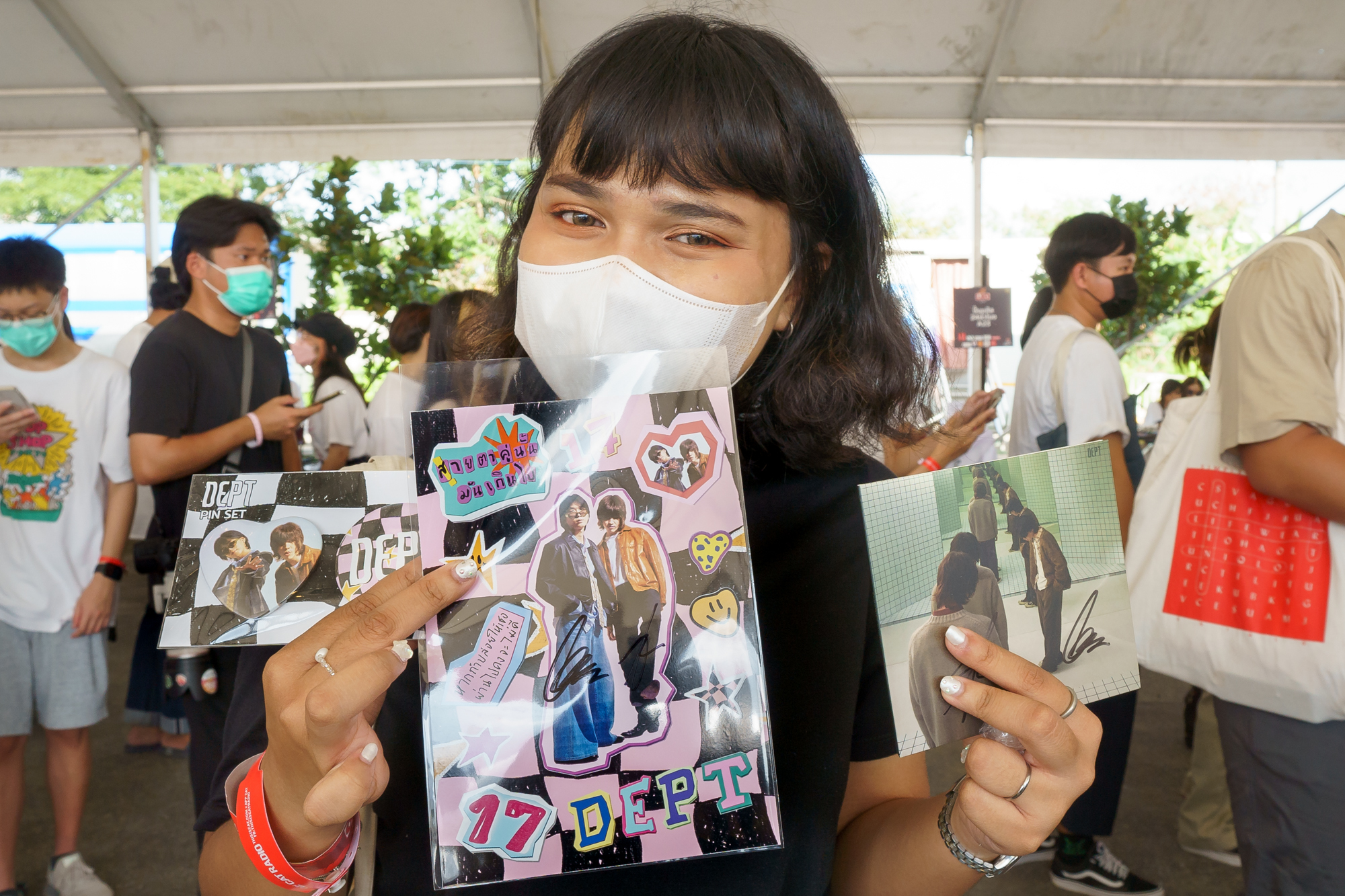 それもそのはず。この『CAT EXPO』の目玉のひとつは、MARKETと名付けられたアーティストの物販エリア。これが異常に広い。ほとんどのアーティストがブースを出店していて(レーベルでの出店などもありました)、もはや物販ブースというよりは、アーティストとファンの交流スペースという趣き。アーティストから直接グッズやCDを買ってサインをしてもらったり、写真を一緒に撮ってもらったりできてしまうんですよね。距離感が近いよ、タイランド。アーティストたちもそれを楽しんでいる様子。ライブと同じ熱量で盛り上がっていました。常にどこかに行列ができている印象。デコレーションに力が入ってるブースもあれば、そっけないブースもある。各アーティストのキャラクターが反映されているようで、見ているだけでもおもしろい。