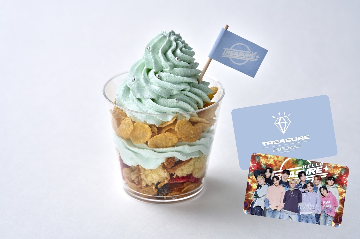2F「ovgo B.A.K.E.R Meiji St.」「MILK MILK MILK!」では、限定のコラボメニューを販売。TREASUREの装飾が施された店内も楽しむことができる。さらに対象メニューを注文するとオリジナルカップスリーブをプレゼント。