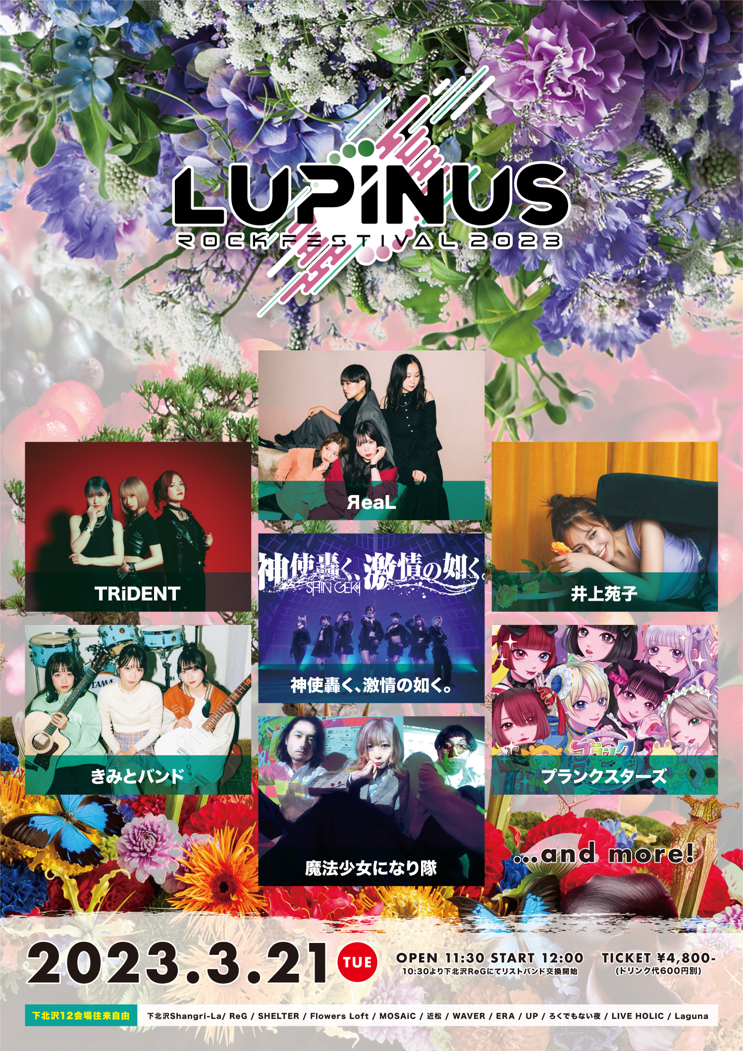 2023年3月21日(火・祝)に、下北沢Shangri-La/ReG/SHELTER/Flowers Loft/MOSAiC/近松/WAVER/ERA /UP/ろくでもない夜/LIVE HOLIC/Laguna、12会場往来自由にて、Girl's UP!!!&ファミメ!共同主催イベント『LUPINUS ROCK FESTIVAL 2023』を開催する事が発表された。