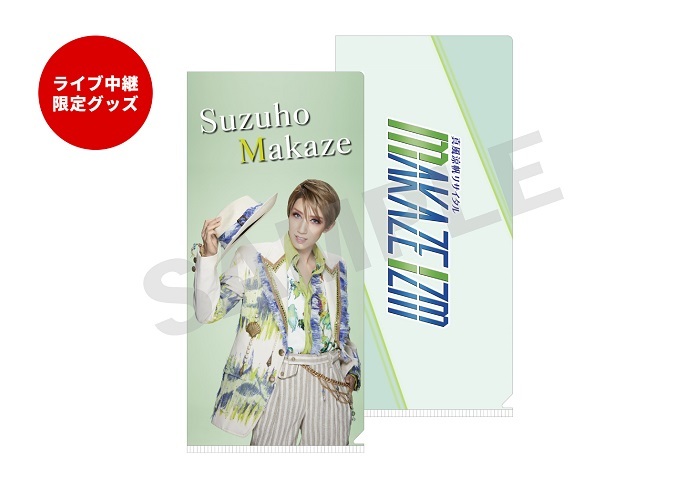 オリジナルグッズは、本作品のメインビジュアルと、タイトルロゴを使用したデザインを2種類セットにしたスリムクリアファイル。チケットの収納だけでなく、写真やマスクの収納など、様々な用途に使用ができる。本グッズは、宙組トップスター・真風涼帆の魅力を詰め込んだスペシャルステージ『MAKAZE IZM』を彩る記念すべきアイテムとなっている。