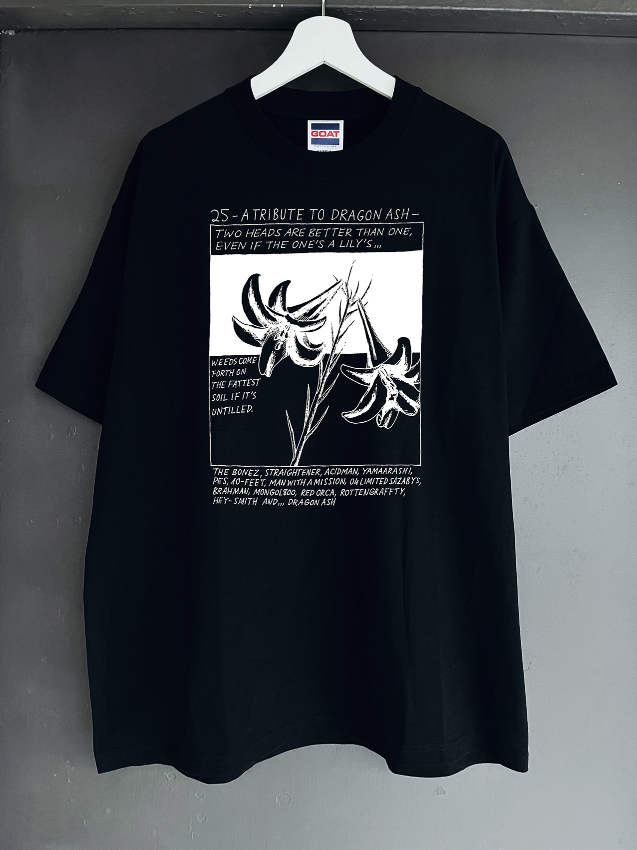 トリビュートアルバム『25 – A Tribute To Dragon Ash -』は、完全生産限定25th Anniversary BOX(CD+オリジナルTシャツ)と初回生産限定紙ジャケ仕様(CD)の2種類が用意されている。本作のデザインは、ジャケット写真同様にDragon Ash代表作のアートワークを多数手がけたアートディレクター・河原光(TLGF)のデザインによるもの。完全生産限定25th Anniversary BOX は、CD+オリジナルTシャツの特製ボックス入り仕様となる。オリジナルTシャツのフロントにはDragon Ashを象徴する百合をモチーフとしたグラフィック、バックプリントには全参加アーティスト&Dragon Ashのリプロダクトされたデザインロゴが施される。ボディーはTシャツブランド“GOAT”を採用。白と黒の2色と、LとXLの2サイズから好みの組み合わせを選ぶことができる。初回生産数限定は、左右見開きの紙ジャケ仕様となり、オリジナルステッカーが封入される。どちらも限定商品となるとのこと。