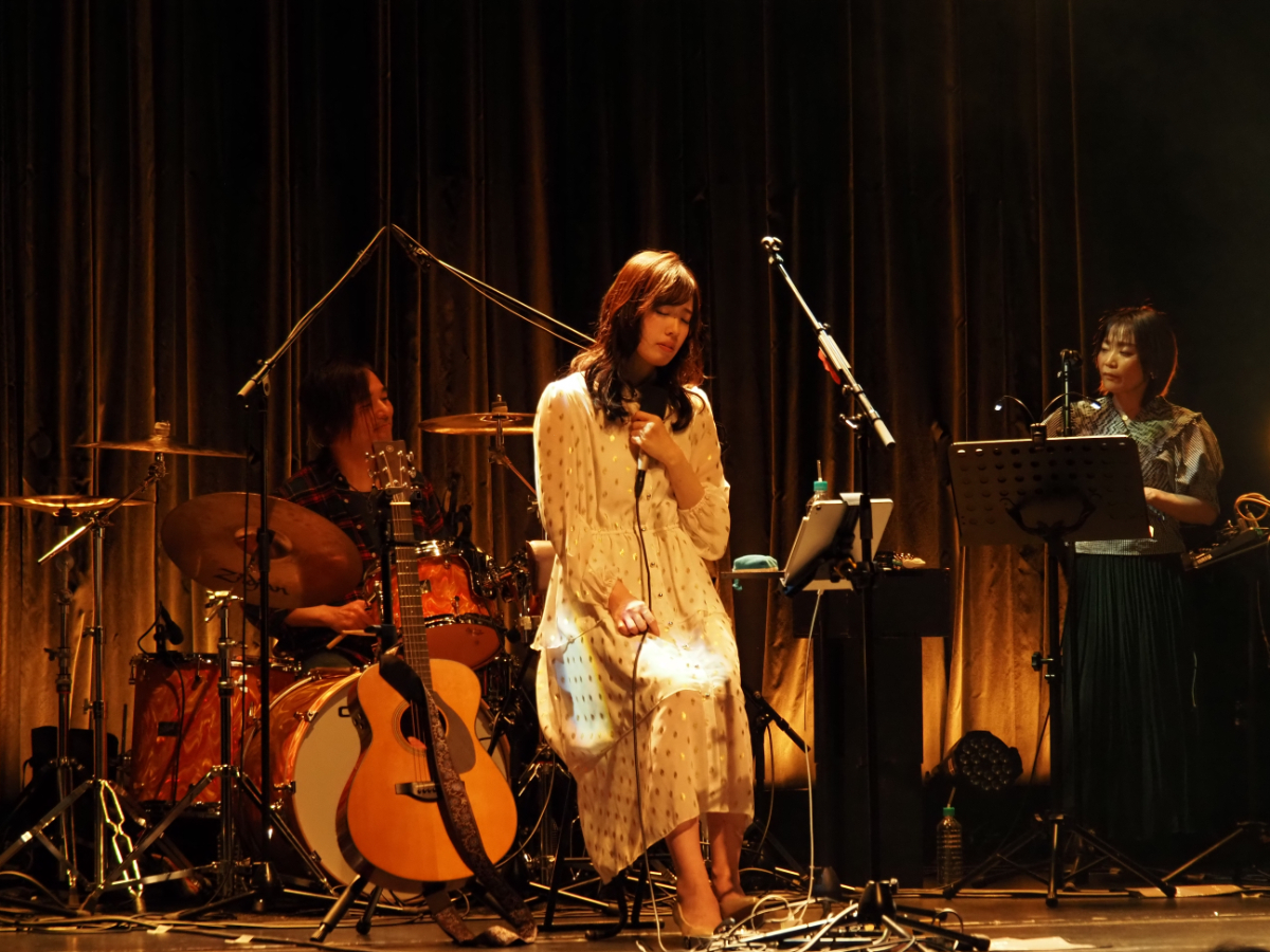 そんな話をしつつも、「『はなかっぱ』と『セイセイせんべい!』は、私の(体力)ゲージの半分ぐらいを使い果たす」とぶっちゃけながら呼吸を整える大原。会場中からも再び笑いが漏れる中、12曲目にはまたガラッと雰囲気を変え、「時のミラージュ」(PS4ゲーム「リトルウィッチアカデミア時の魔法と七不思議」主題歌)をギター弾き語りで披露した。「夢は語るだけじゃそこに届かないから 閉じ込めてた心も全部 力に変えて」と、先ほどのMCで語った話にもつながるような気持ちを力強く歌い上げる。