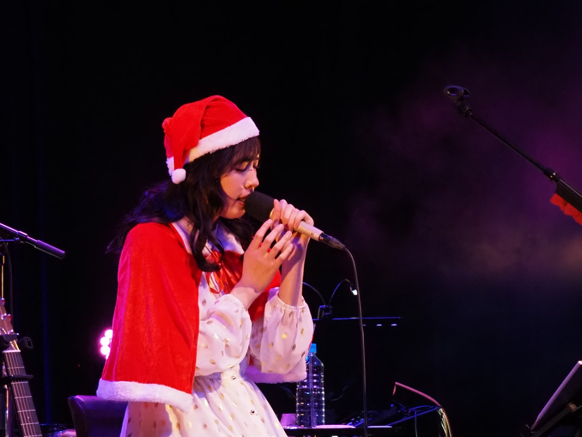 2曲を終え、「こんばんはー」とMCが始まる。今回は「あいうぉんとびーサンタ」というライブタイトルだが、開催までの1、2週間の間は“サンタになりたいライブ”と名称を勘違いしていたそう。