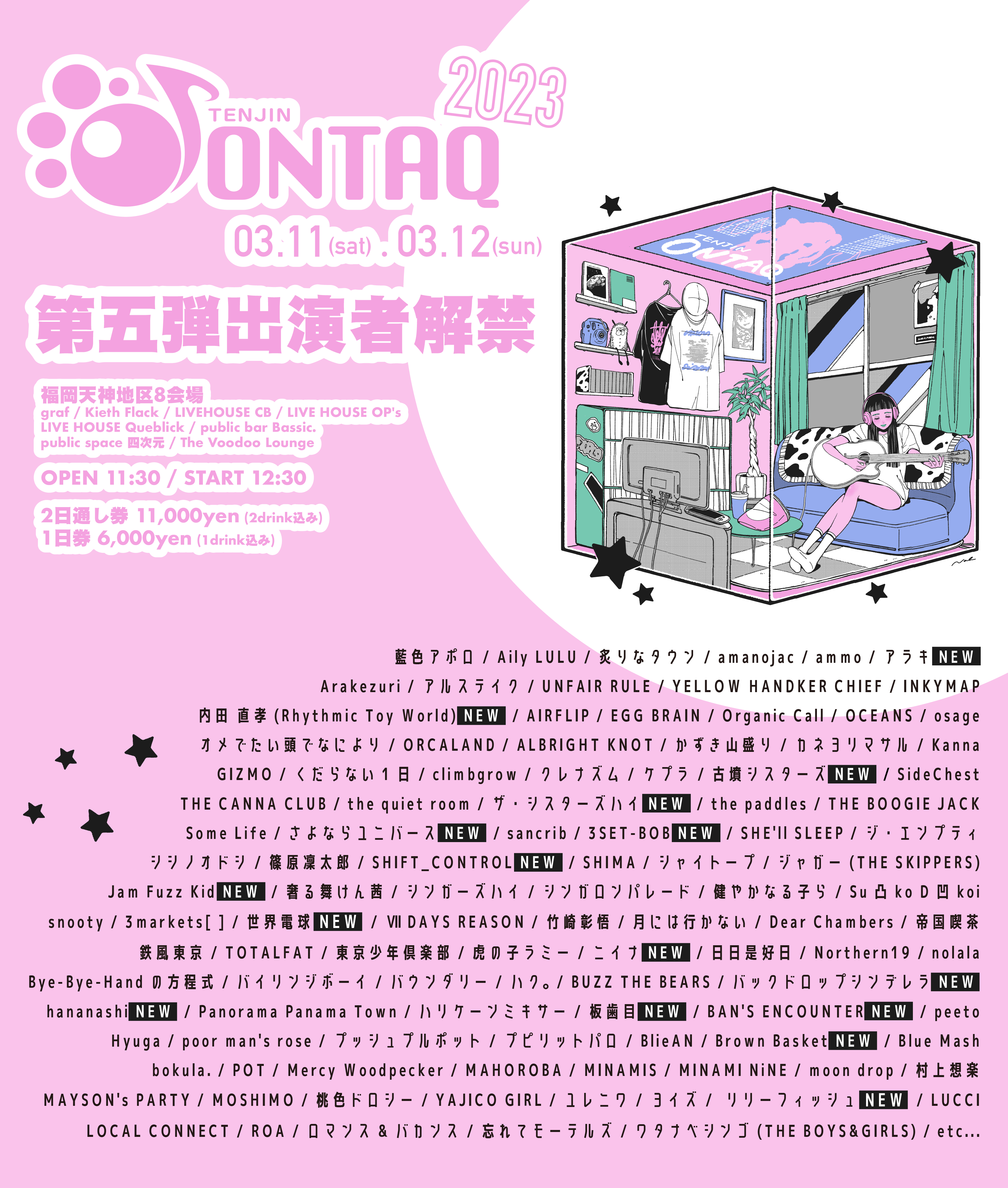 2023年3月11日(土)、3月12日(日)に福岡市・天神地区ライブハウス複数会場にて開催されるライブサーキット『TENJIN ONTAQ 2023』の第五弾出演者が発表された。