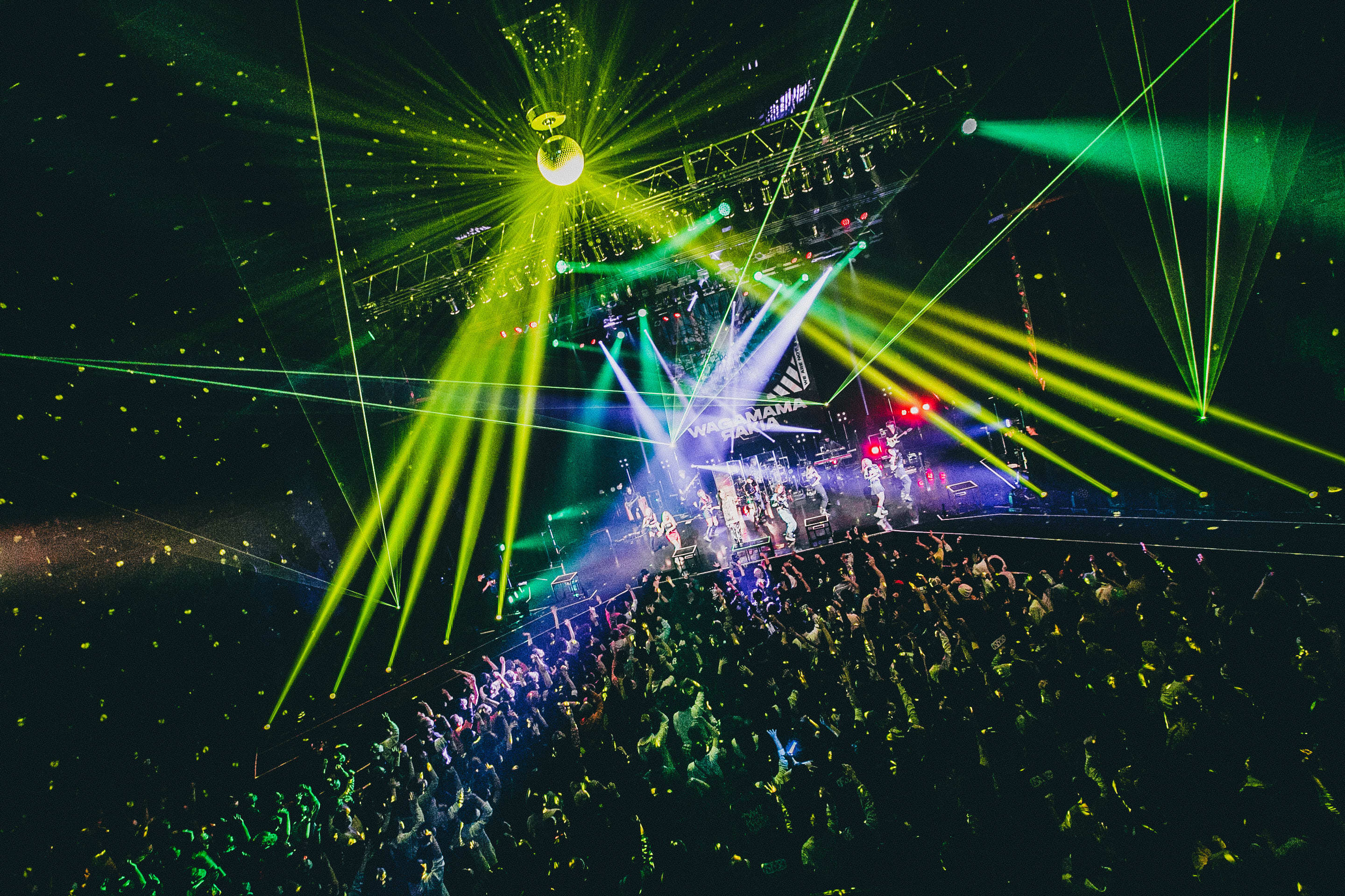 ステージの左右に花道が伸びる広いステージに“WAGAMAMA RAKIA”のロゴが光り、レーザーが飛び交うゴージャスなオープニングで始まったこの日のライブ。SEに迎えられてステージに登場した4人は颯爽とお立ち台に立ち、観客の大きな拍手と歓声を浴びる。「我儘ラキア、始めます」と星熊が告げると腹に響く重低音と重厚なバンドサウンドから、最新EP『ONYX』収録の「Bite Off!!!!」でライブがスタート。ヘヴィにキュートに、クールに勇ましく。ラキアの多角的な魅力を詰め込んだようなOPナンバーに、一気に熱を上げたフロア。「一緒に踊ろ?」と煽るMIRIに、観客がジャンプを合わせて会場を揺らす。自由な場であるはずのライブ現場が、ガチガチの規制に縛られて約2年半。どんなに楽しくても興奮しても声を上げることさえ出来ず、グッと堪えてきた長い期間を経て、この日は規制下ながら声出しOK。1曲目が終わり、観客が興奮と歓びの声を上げる。