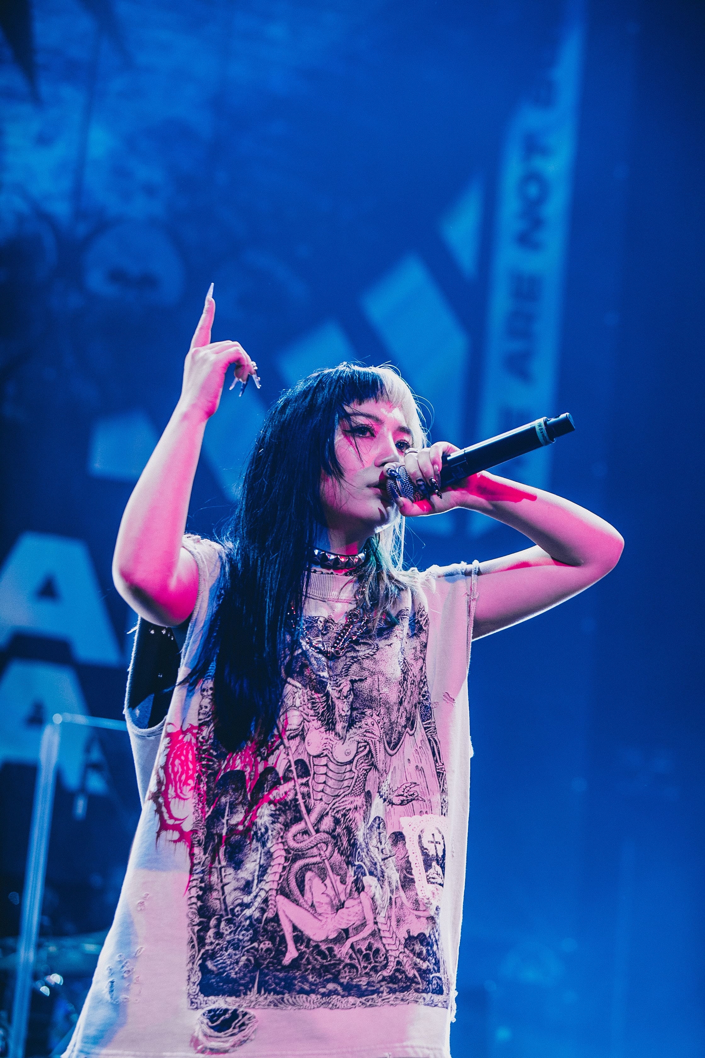 コロナ禍でも「音楽を届けなきゃ」と必死でライブを作り、アコースティックライブを行ったことを振り返り、「あの時の気持ちを忘れないように」とピアノの演奏と美しい歌声で披露した「Days」では、「良かったら、一緒に歌って下さい」と呼びかけ、会場中が大きく手を振り歌声を合わせる。「rain」、「Ambivalent」と続いて再びフロアの熱を上げると、ダンサーが加わり「JINX」へ。MIRIの鋭いラップで始まり、愛を求め戦い続ける覚悟を歌う楽曲の深い世界観を歌とダンスで表現した。