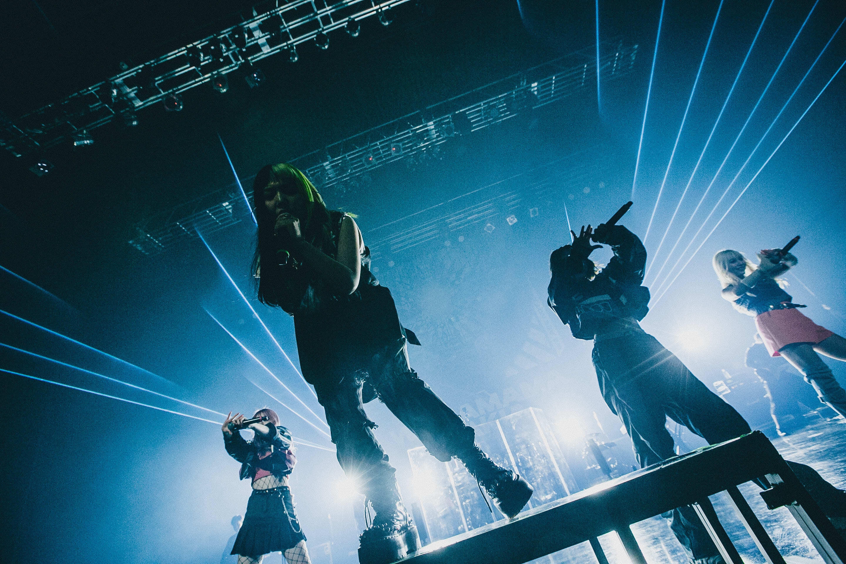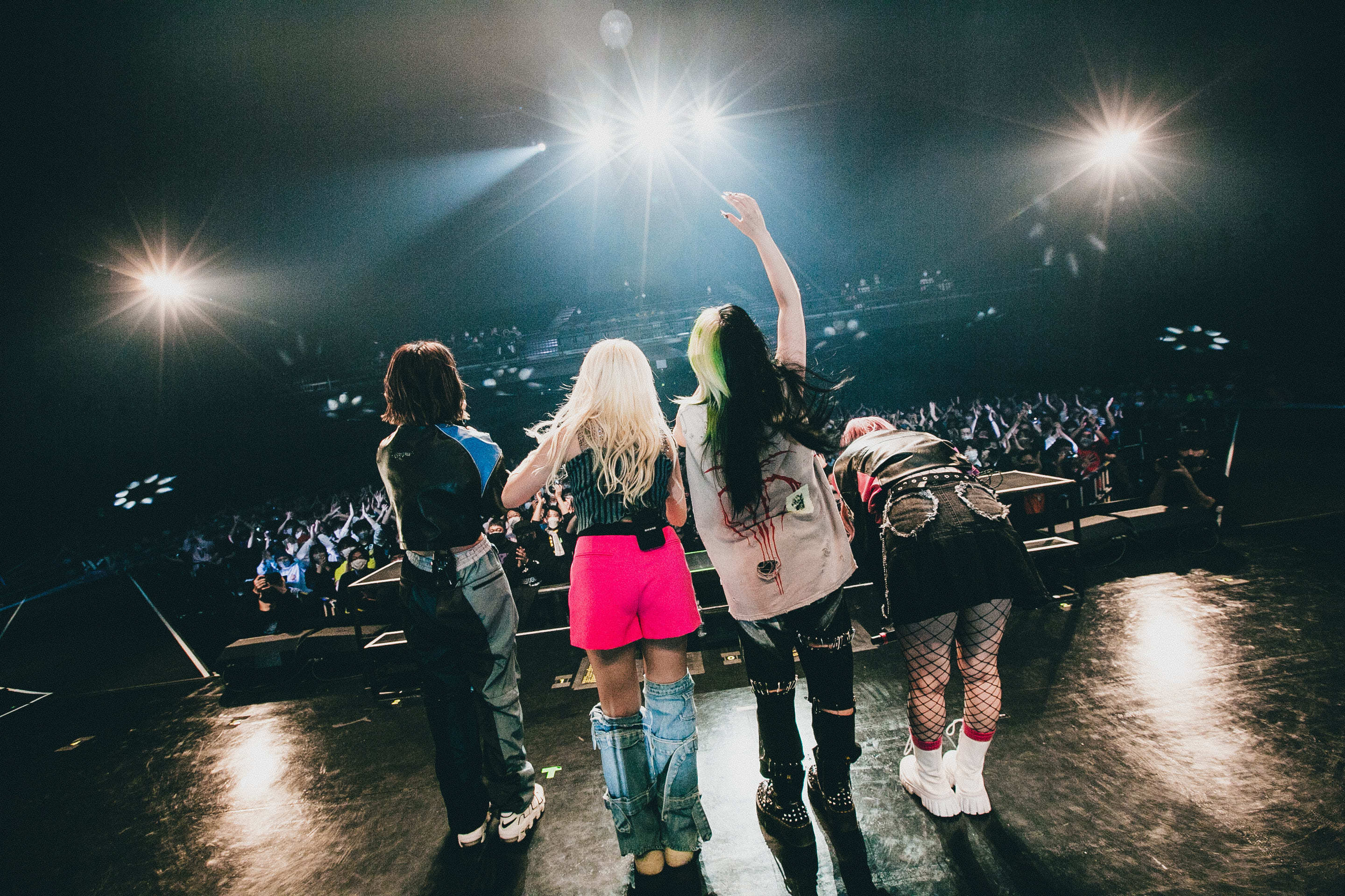 星熊がここまで支えてくれたファンへの感謝を告げ、ライブはクライマックスへ。「こんな自分でも出来るから、みんなも好きなことやって欲しいなと心から思います。負けんな! どんな奴にも負けんなよ!」と熱いメッセージを届け、始まった曲は「GR4VITY G4ME」。強さも弱さもみんなの想いも背負いながら魂の叫びを響かせ、全力のパフォーマンスを見せる4人に、熱い拳を突き上げて応える観客。本編ラストは、「魂ぶつけて帰ります」と間髪入れずにぶっ放した、「SURVIVE」。まさに全身全霊、鬼気迫る歌とパフォーマンスで観客の心に迫ったこの曲。<今!叫べ!>の歌詞に観客が吠え声を上げて応えると、気持ちのぶつかり合いから生まれる強烈なエネルギーと熱量が会場を包む。