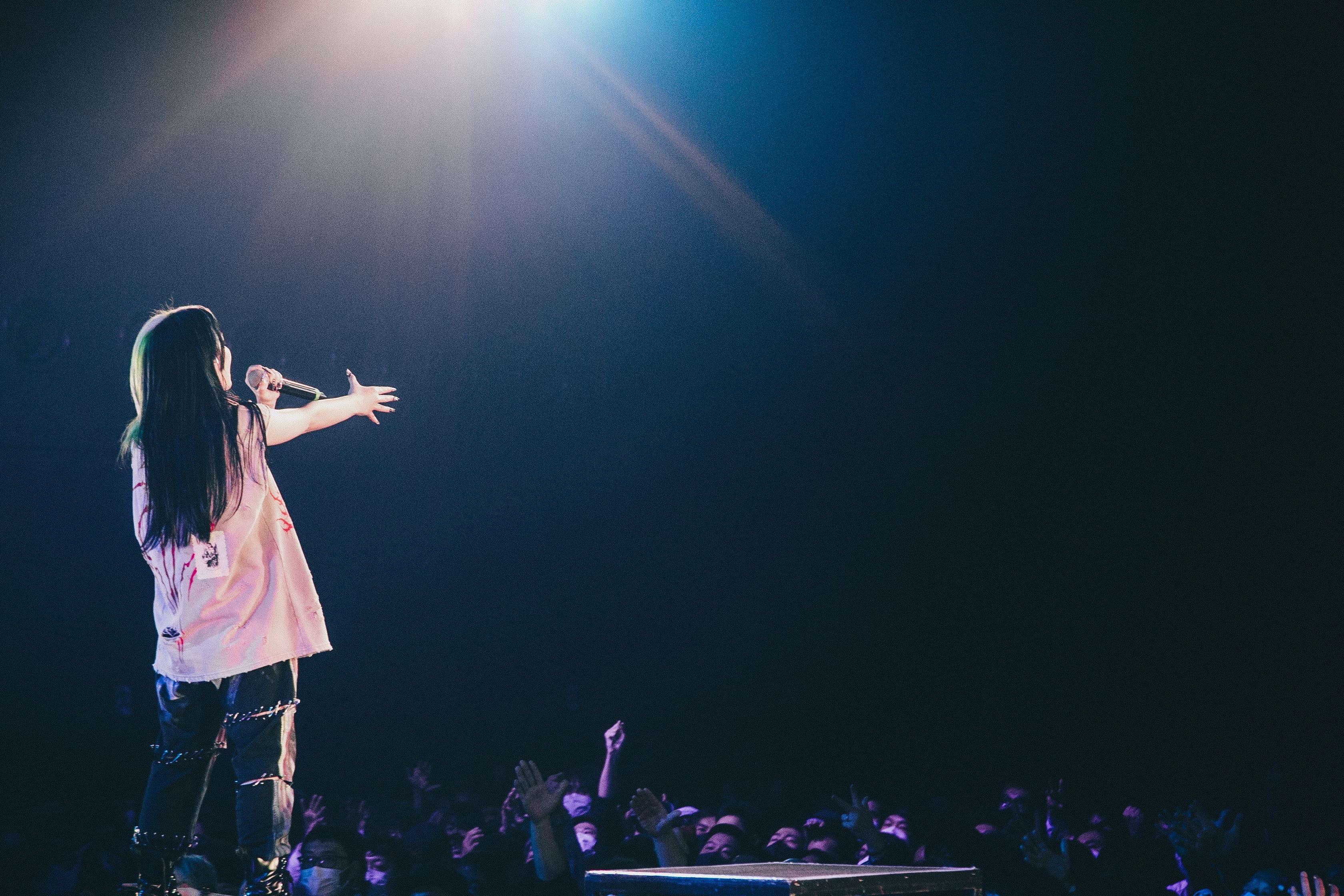 「ホントのホントのファイナル始めましょう。このツアー色んなことがあって、ステージから逃げ出したくなることもたくさんありました。でも自分には音楽というものにしがみ付くしかなくて。みんなの待っててくれる声がすごく心に突き刺さる日もありました。でも、なんとかみんなの力も借りて、完走することが出来そうです」