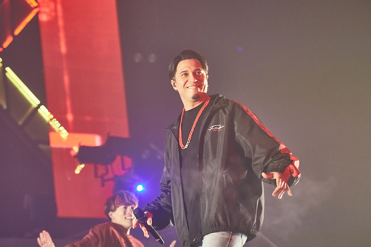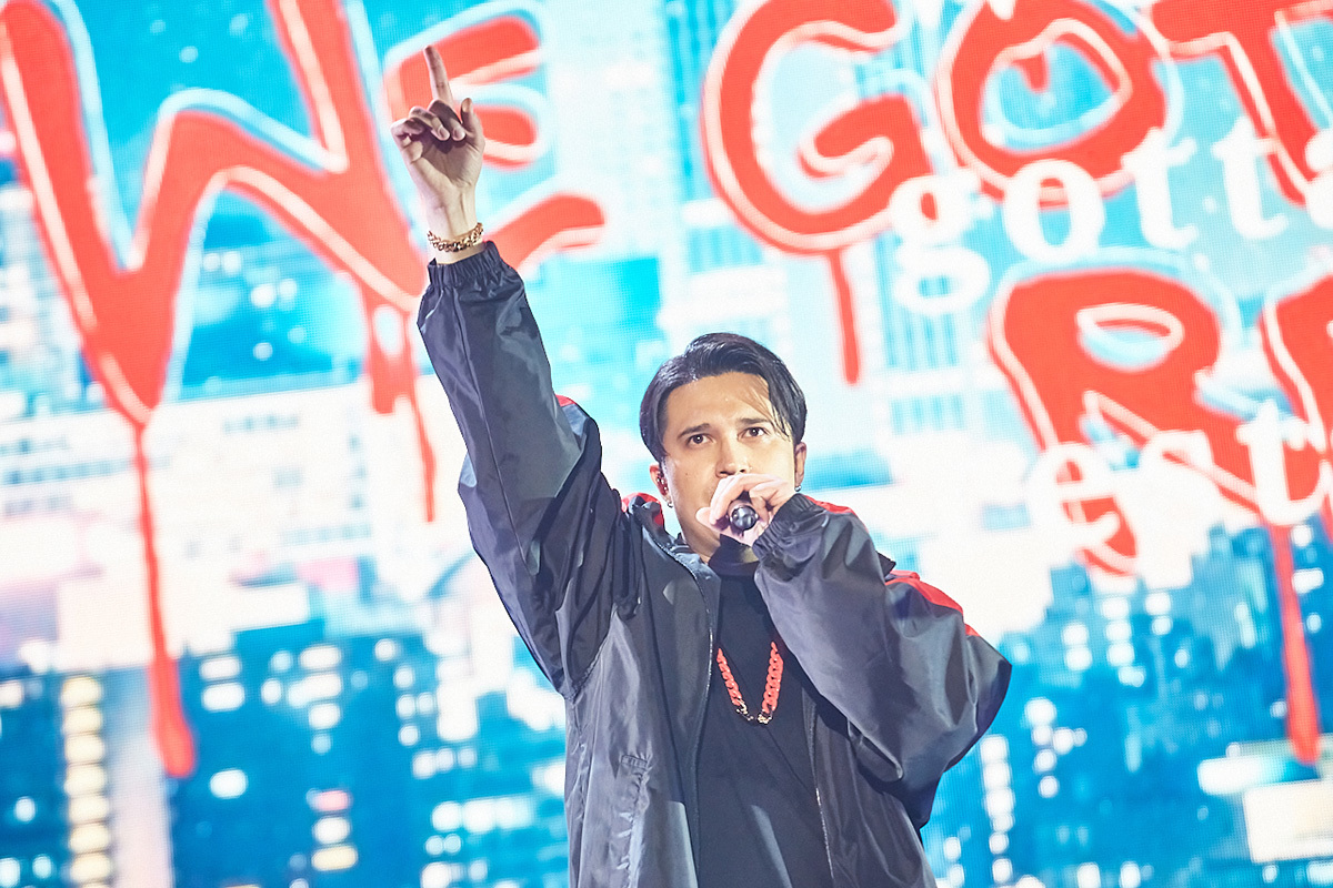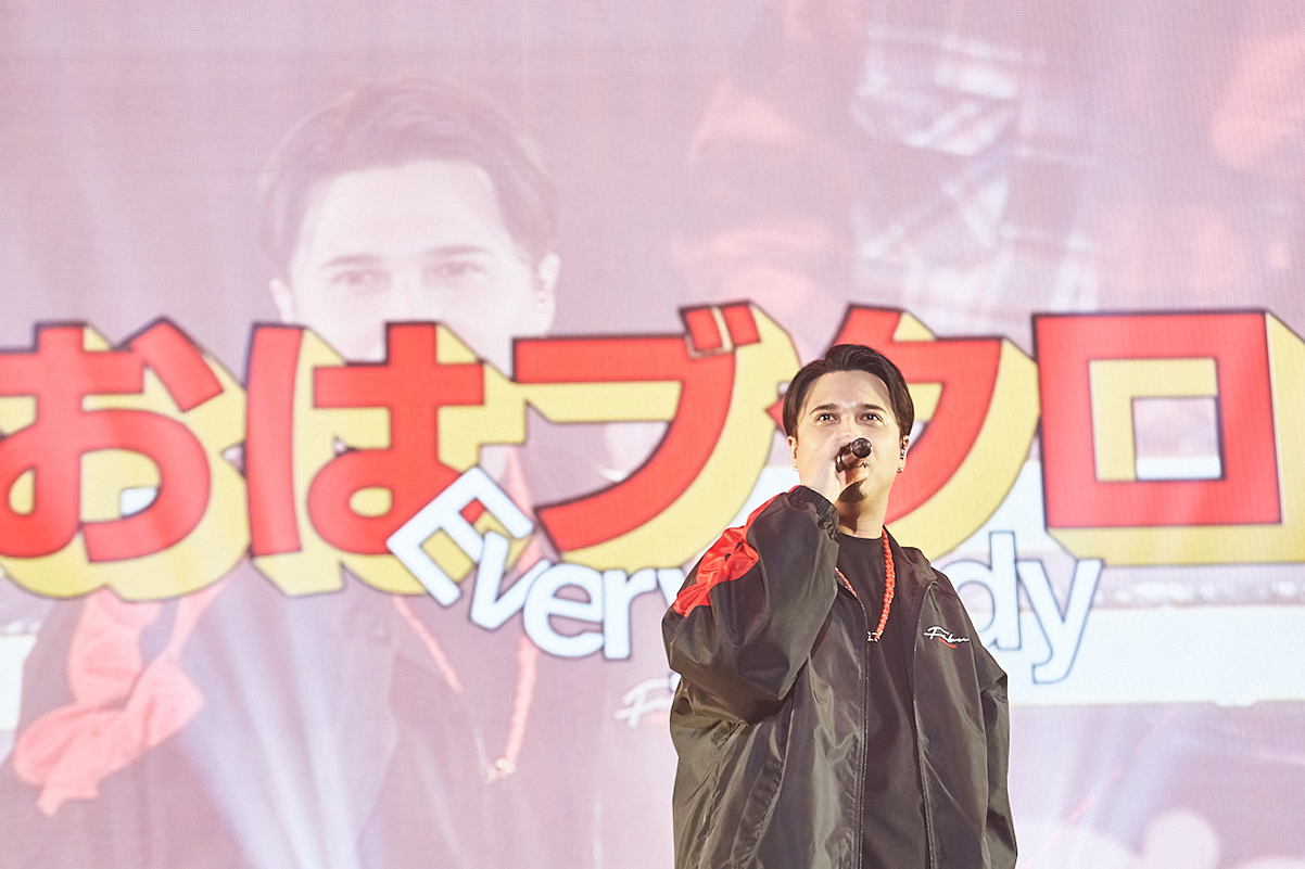 そしてDJ U-ICHIがBuster Bros!!!の声をスクラッチし、再構築したDJプレイタイムでは、3人がDJブースの両脇でマイクを持ち、DJ U-ICHIのプレイを盛り上げ、同じようにDivision Dance Battleのダンスショーケースでもマイクで観客を煽るなど、楽曲以外の部分でもステージを盛り上げるBuster Bros!!!。