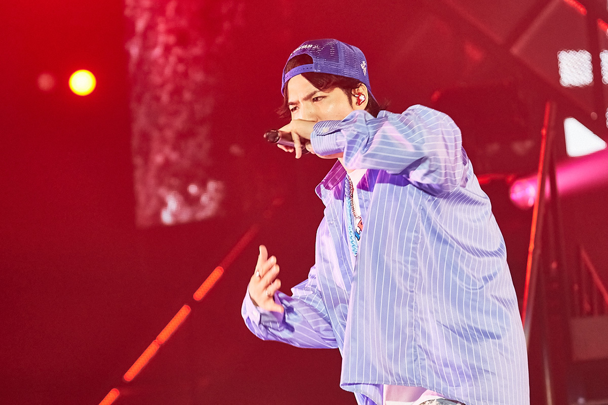 そして自然と観客から沸き起こった手拍子に合わせて、3人がラップをアカペラで掛け合うという、ライブならではの曲の始まり方も印象的だった「IKEBUKURO WEST GAME PARK」と続き、そのボルテージは高まっていく。