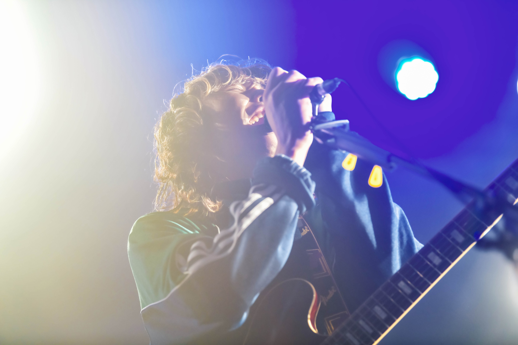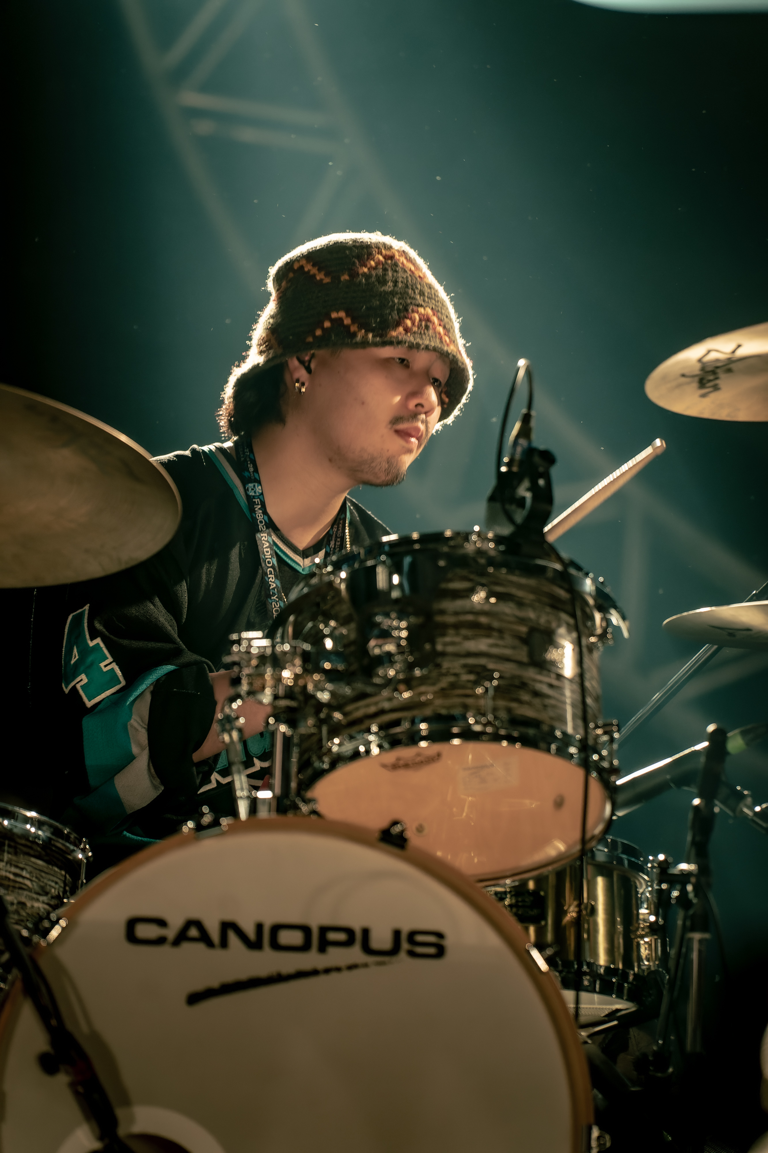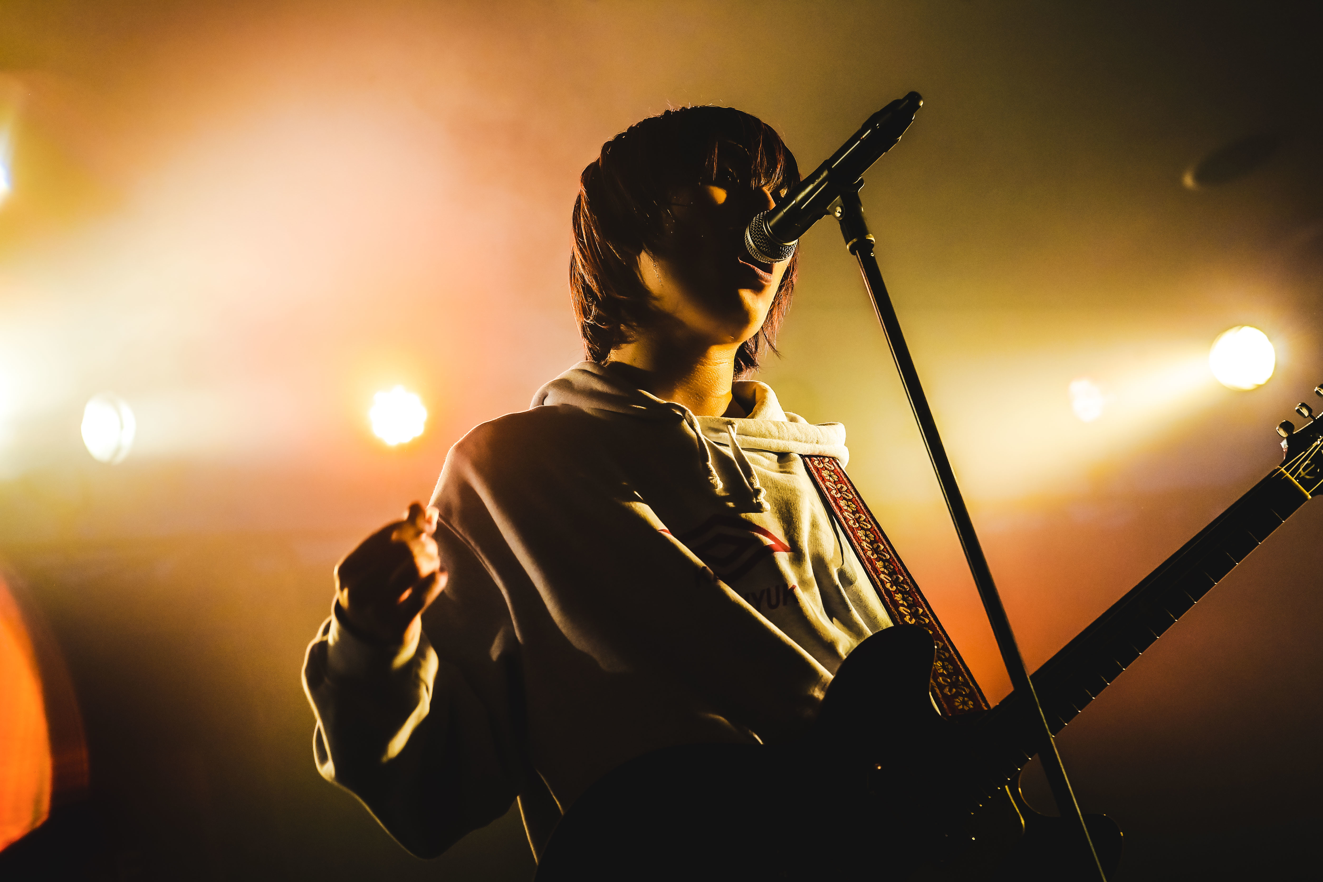 この日も衝動やモヤモヤとした感情を解き放つ楽曲から、しっかりと聴かせて胸を打つ新曲「君が月」、ラスト「ガソリンタンク」、「春風往来」では、疋田耀(Ba)が目をひん剥いて、杉崎拓斗(Dr)はポーカーフェイスながらも立ち上がり一打ごとに観客もメンバーも焚き付け、アクリ(Gt)は笑顔を絶やさず頭を振り、杉浦祐輝(Vo.Gt)は倒れ込み立ち上がれなくなるほど全てを振り絞りしぼる。そんな全身全霊で音を鳴らし、でかい声で歌われたら、胸を打たれるに決まっている。命を燃やすような、すさまじいライブだった。個人的には、「じゃなくて」の<何もかもが馬鹿らしくて/その何もかもがただ輝いて/ラジオから流れた電波/孤独を繋いで>が、この日にピッタリで、しばらく頭から離れなかった。