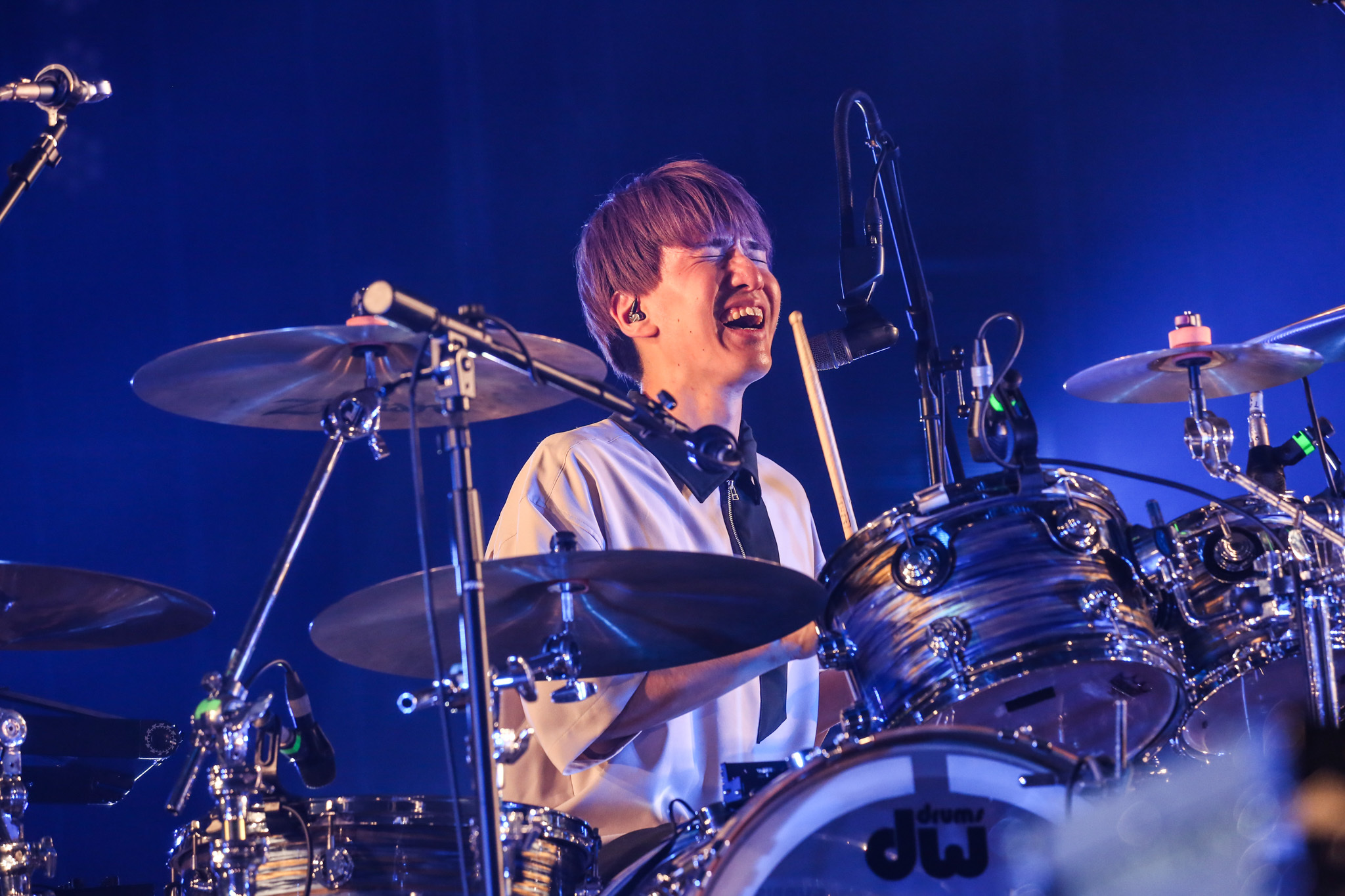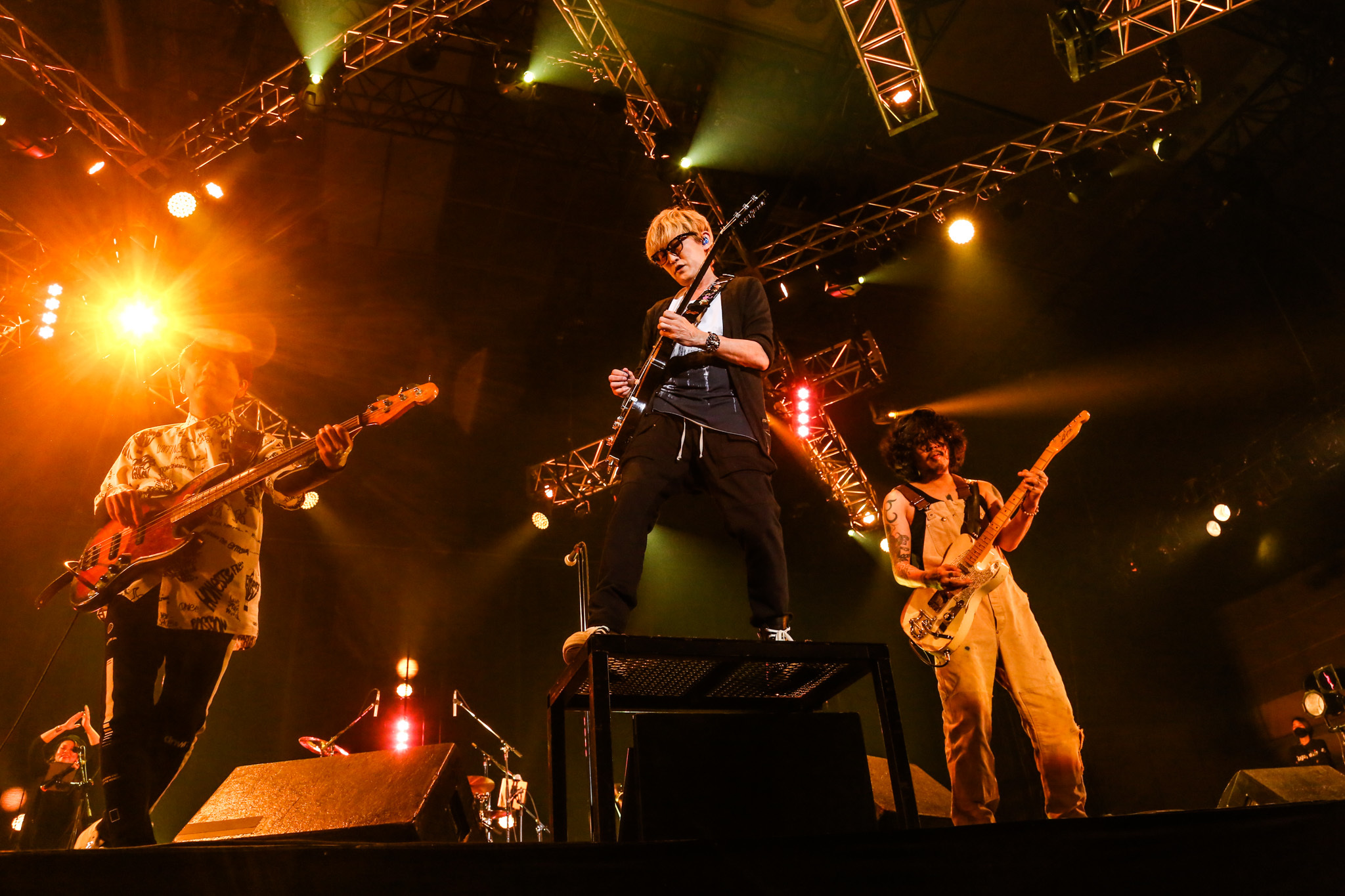 鈴木貴雄(Dr)の鼓動のようなリズムを土台とした圧巻のアンサンブルとグルーヴに魅せられて、フロアは一瞬でジャンプの嵐に。3人が塊となってノンストップで快楽を生み出すバンドサウンドは唯一無二だ。ライブ中、曲間があったのは爽やかなサウンドで緩急をつけた「夏影テールライト」の直前のみ。最後までMCなしで駆け抜け、シームレスに10月リリースの18thシングル「カオスが極まる」へつなぐ強力なセトリで締めくくった40分。凄まじいエネルギーを全身にあびた衝撃は、ライブ終了後にお客さんから「すっげぇー!」と声が漏れるほどだった。