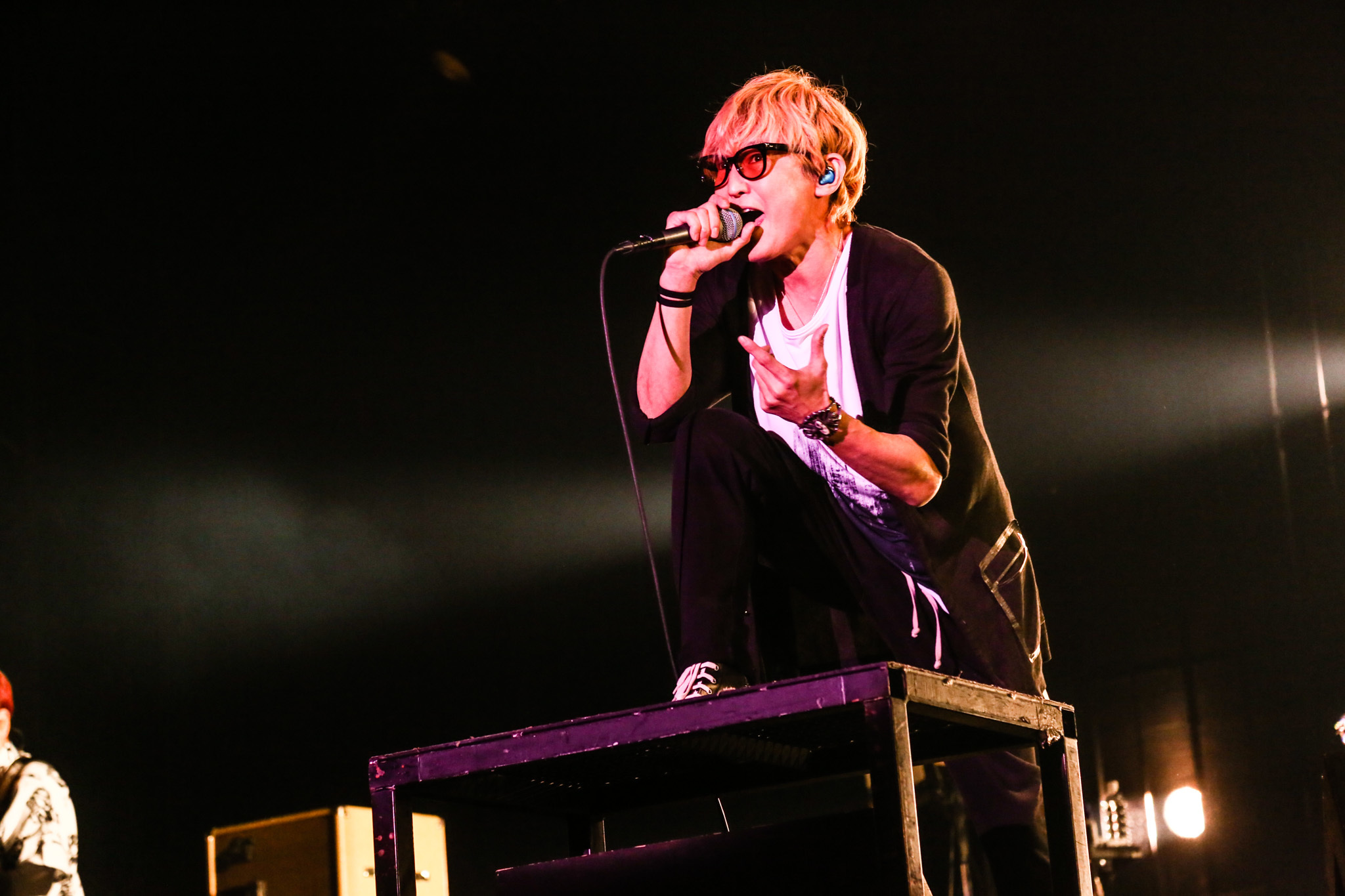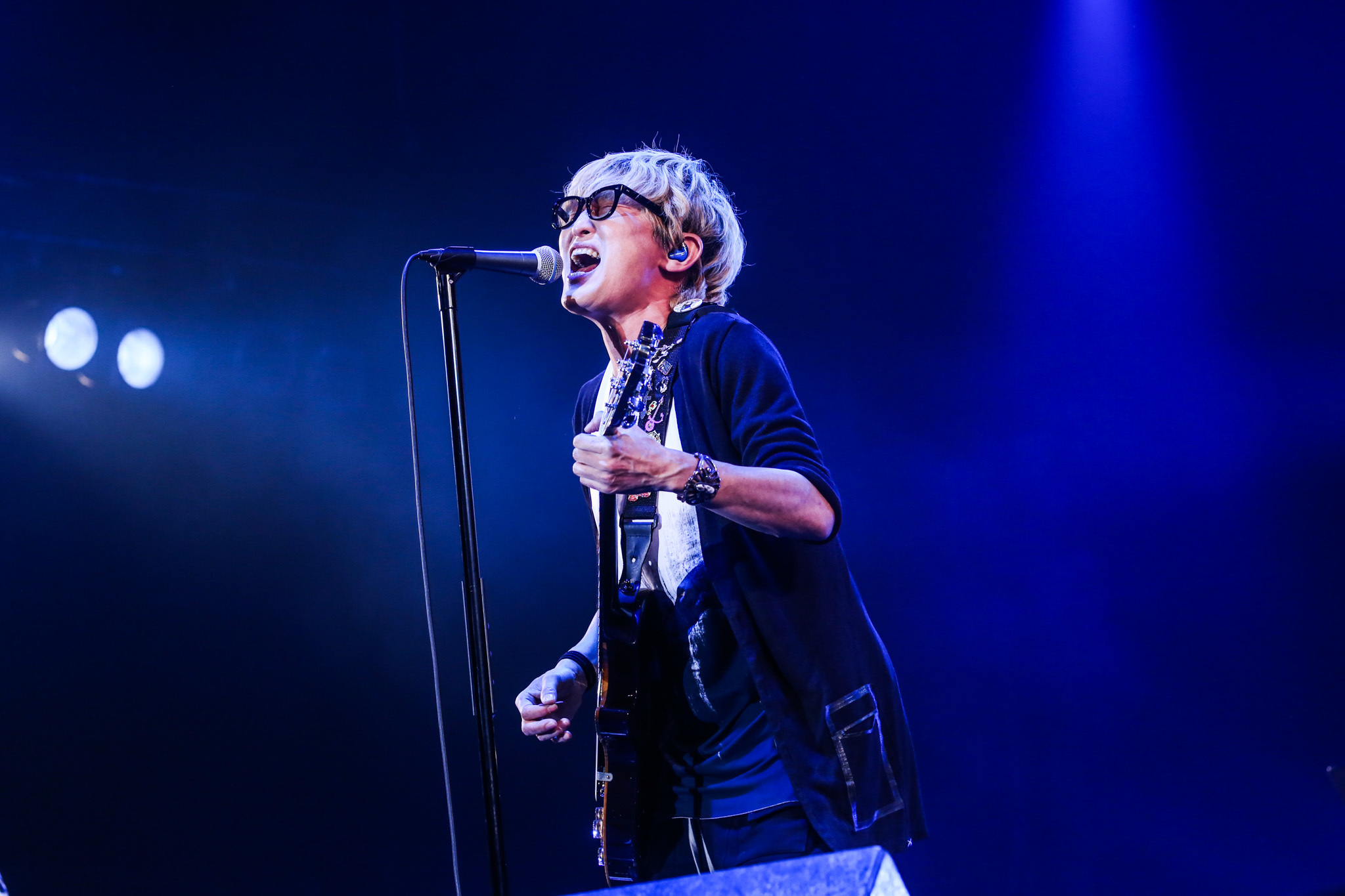 初っぱなの「シンフォニア」から、<『RADIO CRAZY』に会えたら何処へでも飛んでけよ>と歌い変え、L-STAGEの大観衆を一つにしたのはTHE BACK HORNだ。4人とは思えない強靭なアンサンブルをこれでもかと突きつけて、「音楽がなくてはならない大好きな皆さんと、最高の時間を作っていきたいと思います!」と松田晋二(Dr)があおるや、スリリングな「罠」へ。山田将司(Vo)の絶唱にも似たボーカルが、切実な詞世界を浮き彫りにする。さらに、山田がアコギを手にし、菅波栄純(Gt)がベルを鳴らすなど、切なくも柔和な「羽根〜夜空を越えて〜」でクリスマス・ムードを増幅。