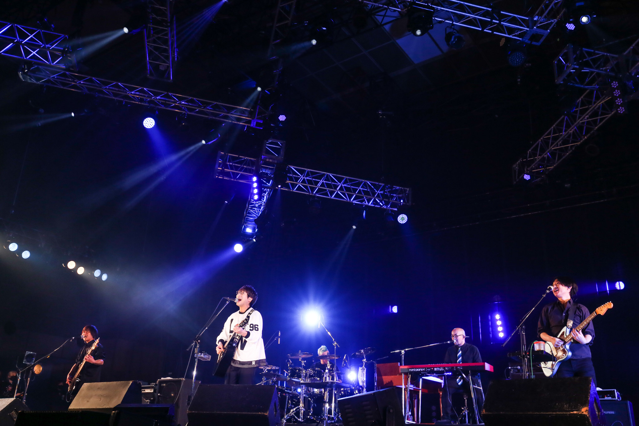 会場を出ていく観客に対して阪井一生(Gt)は「この後、「君に届け」やります!」、「どんな止め方やねん(山村)」と、漫才のようなMCを繰り広げつつも「星に願いを」、「夜は眠れるかい?」など代表曲をバチッと決めてエンターテイナーぶりを見せつけた。最後は「君に届け」で会場をひとつにしてフィニッシュ。初見の人も楽しめるオープンマインドのステージで魅力を存分に発揮した。