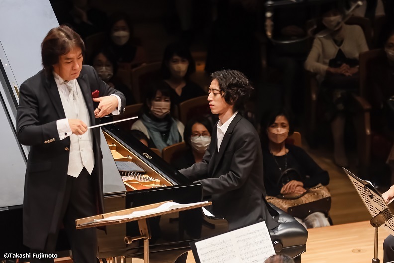 トーマス・アデス「ピアノと管弦楽のための協奏曲」(日本初演)で共演した指揮者 飯森範親とピアニスト角野隼斗 (C)Takashi Fujimoto