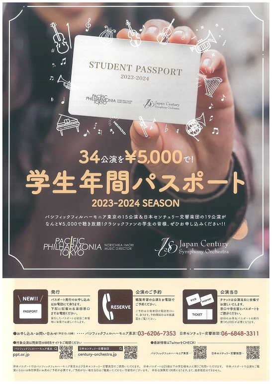 二宮 両楽団とも、定期演奏会をはじめとする主催公演が対象です。出演者の名前を見ても、この年間パスポートの発想が如何に斬新で魅力的かがわかると思います。