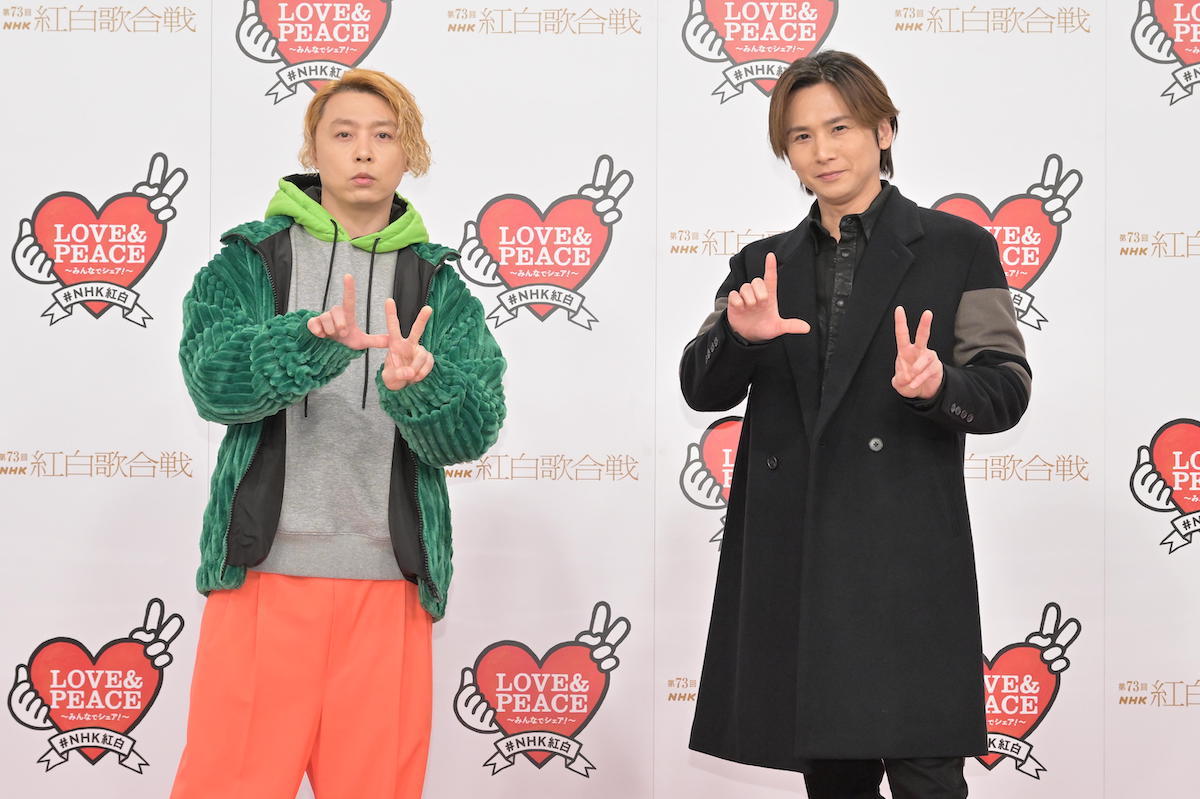 CDデビュー25周年を迎えたKinKi Kids。この記念すべきアニバーサリーイヤーに華を添えるのが『第73回NHK紅白歌合戦』の出場だ。12月28日に渋谷・NHKにて行われた『第73回NHK紅白歌合戦』の音合わせ及び取材会には、シックなロングコートの堂本光一とグリーンのジャケットにオレンジ色のパンツの堂本剛という対照的なファッションで登場したふたり。アニバーサリーらしく「硝子の少年」(1997年)と「Amazing Love」(2022年)という新旧の楽曲を披露した。