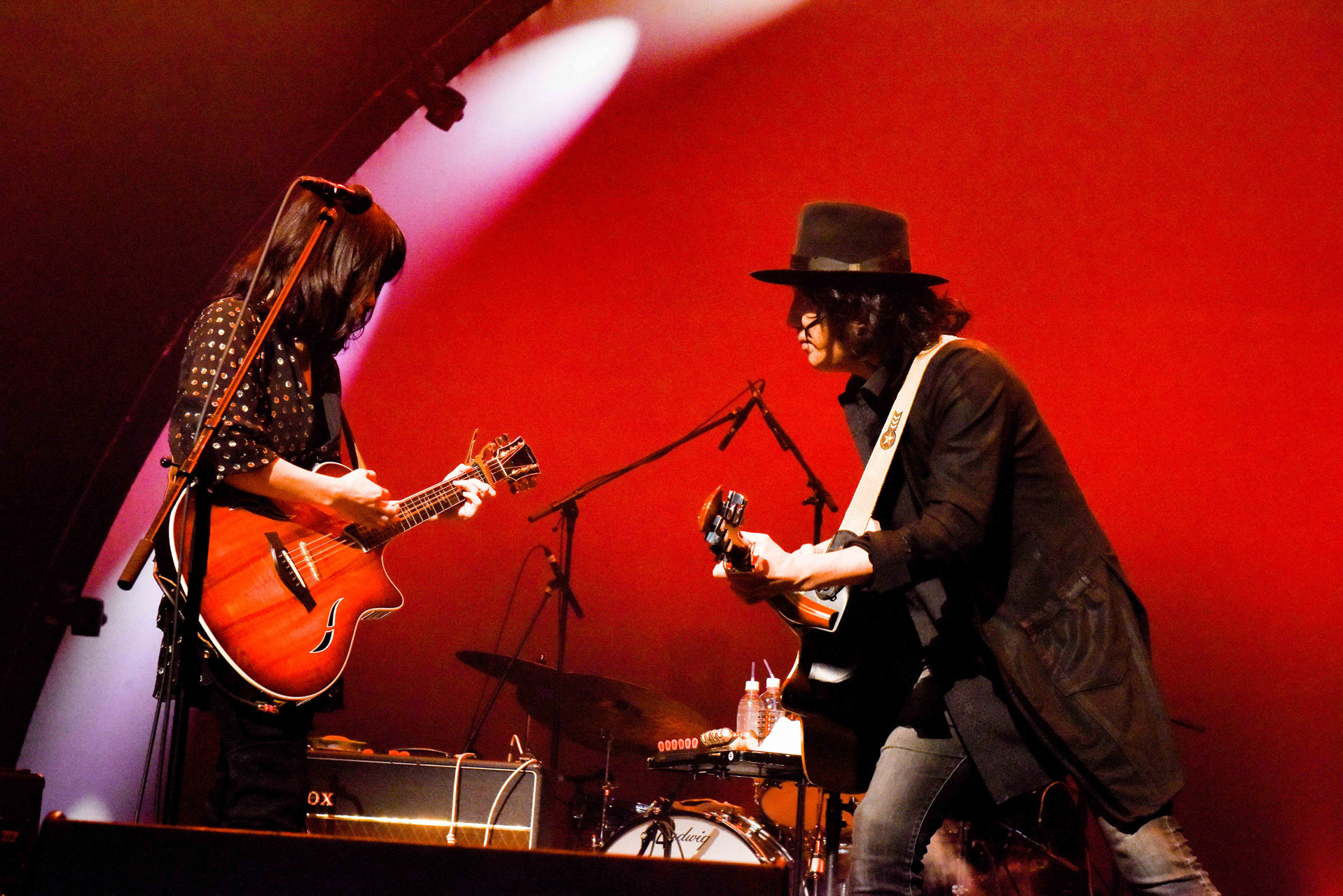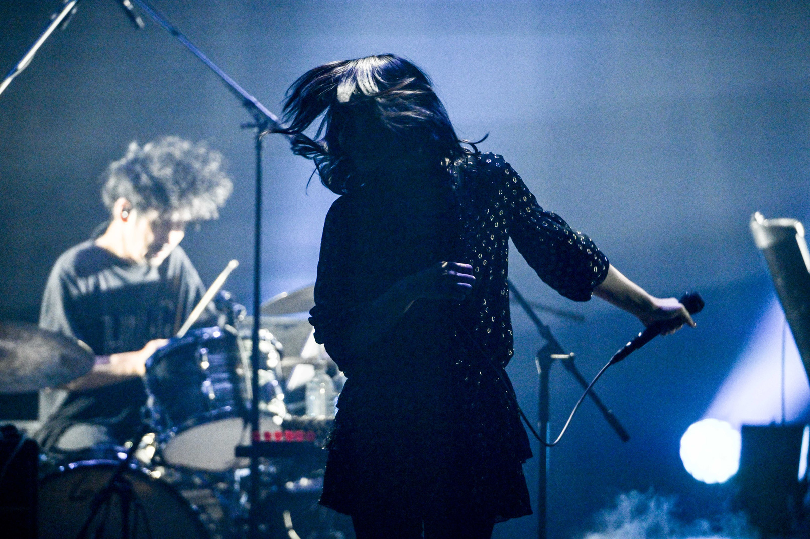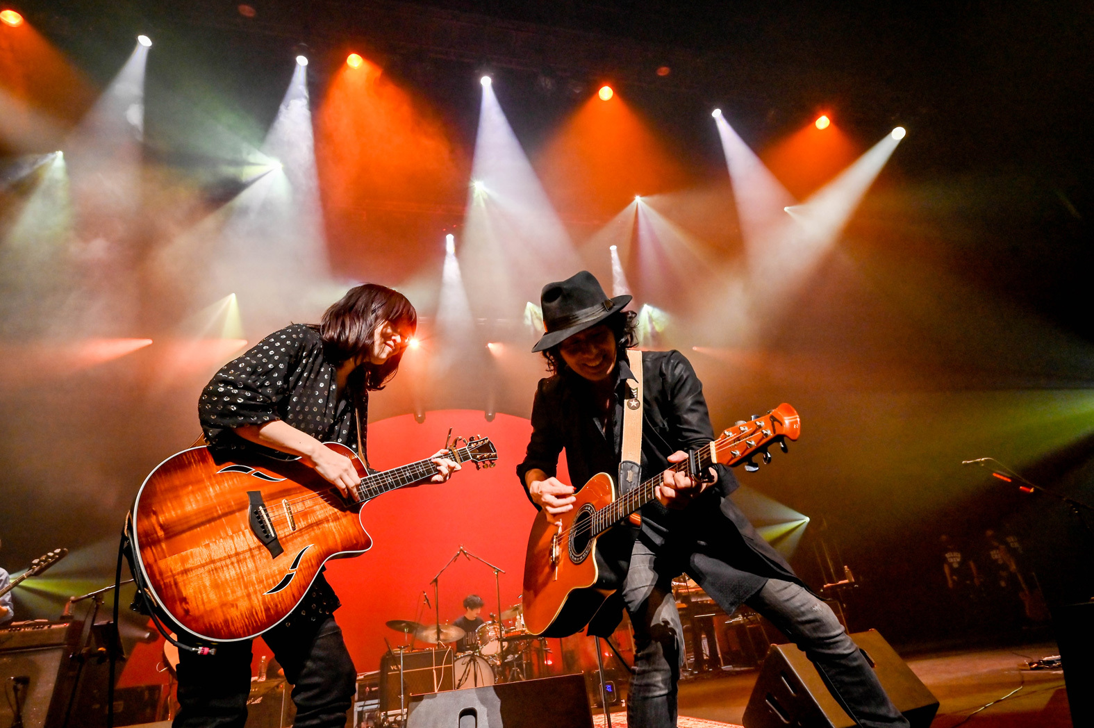 KUMIの滑らかで伸びの良い歌声に、NAOKIのギターが情熱的に絡み合う「It rains」。アップテンポだけれど抜群に美しいメロが観客を心酔させる「Shadow Behind」、哀愁を感じさせるギターの音色に引きこまれる「Carnation」と、アルバム『A revolution』はもちろん、新旧の楽曲でライブの世界観を作り込んでいく。「今日は来てくれてありがとう! 大阪ファイナル、最後まで楽しんで!」、KUMIが声をかけると、ステージにさらに濃い赤の照明が差し込む。KUMIの歌声がまるで楽器のように響き、リズムを打つように言葉が紡がれる「Hallelujah to you」。観客はタイトルのまま、賛美するように手を高く掲げて音を受け止める。アルバムに収録されている流れのままに、続く「You’re the reason」へ。KUMIとNAOKIは音を確かめ合うように互いを見合うと、抑揚をつけた歌唱、遊び心が散らばったギターで溢れる愛を奏でる。