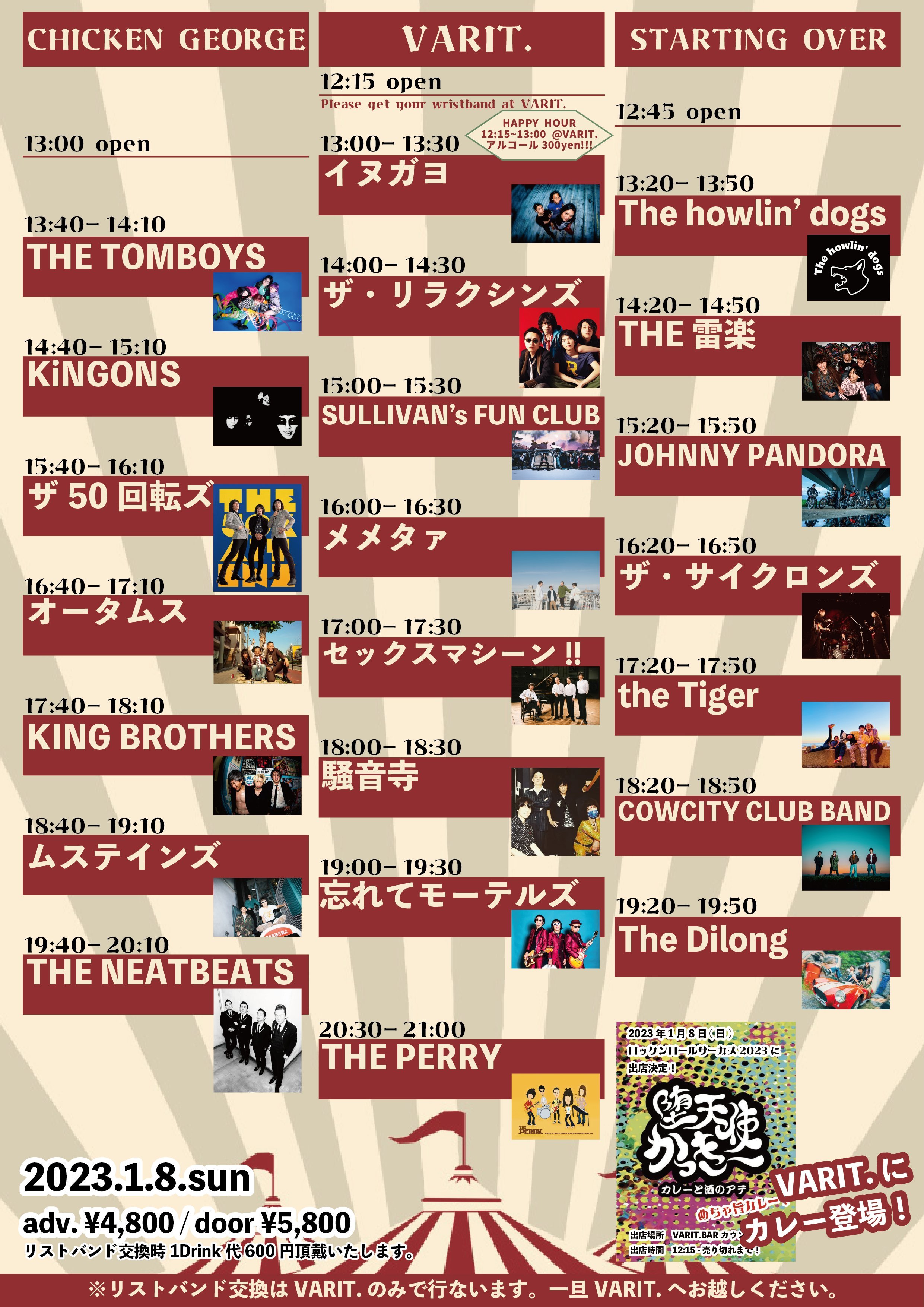 特にこれまでとは変わらないんですが、今年はTHE NEATBEATSが、東京の荻窪で新しく「TOP BEAT CLUB」というカフェとライブスペースとレコード・ショップが一体になった場所をつくるためにクラウドファンディングをしていて。数年前から始まったプロジェクトで、僕も手伝ってるんですけど無事目標金額を達成しました。「TOP BEAT CLUB」のように、関西ではVARIT.をロックンロール文化を若い世代に残していく場所にしたいと、そういう話をしていたりするんです。それはやっぱりコロナ渦で、ライブハウスという文化を作ってきた立場として、残していかないといけないなと強く思うようになったからだと思います。なので今年のイベントには、その想いはこれまでより強く乗っかっていると思いますね。
