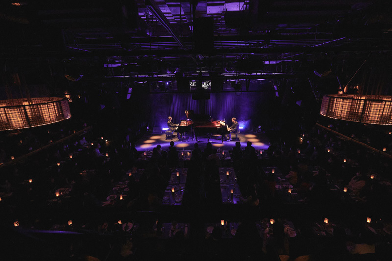 などと浸っているうちに、客席が暗くなり、いよいよ角野とトリスターノが登場。近い! ブルーノートのステージ、近い! 筆者は上手側(ってこういう場所でも言う?)の後方テーブル席であったか、それでも二人が「そこにいる」感が十分にあった。ワクワクする。