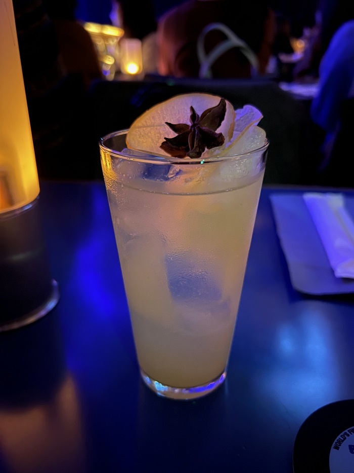 この日はなんと、スペシャル・カクテルがあるという。角野隼斗をイメージして作られたというではないか。やや言い訳じみているが、「これもお仕事!」と割り切って、お酒をいただくことにした。なんとも爽やかなレモン色のカクテルが運ばれてきた。イメージにぴったりだ!「ハ」ヤト・「スミ」ノから連想して八角を使っているという。とても飲みやすい優しいお味。さりげなく酔いしれてしまうこの感じ、まさに角野の音楽そのものだ……