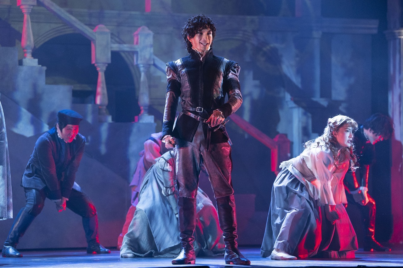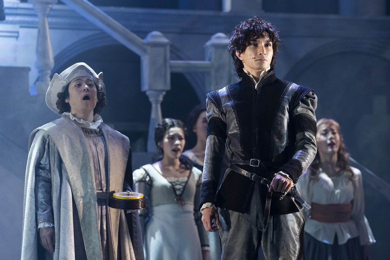 時の権力者を演じ、本作の芝居に重厚さを持たせていたのは、ロレンツォ・デ・メディチ役の今、ジュリアーノ・デッラ・ローヴェレ役の岡、ロドリーゴ・ボルジア役の別所らベテラン役者陣だ。絢爛豪華な衣装を着こなし、熾烈な権力争いを繰り広げる様はそれぞれに違った迫力がある。特に、各々のソロ歌唱シーンや、敵対し合うジュリアーノとロドリーゴが対面で火花を散らすシーンは見応えも聴き応えもたっぷりだ。