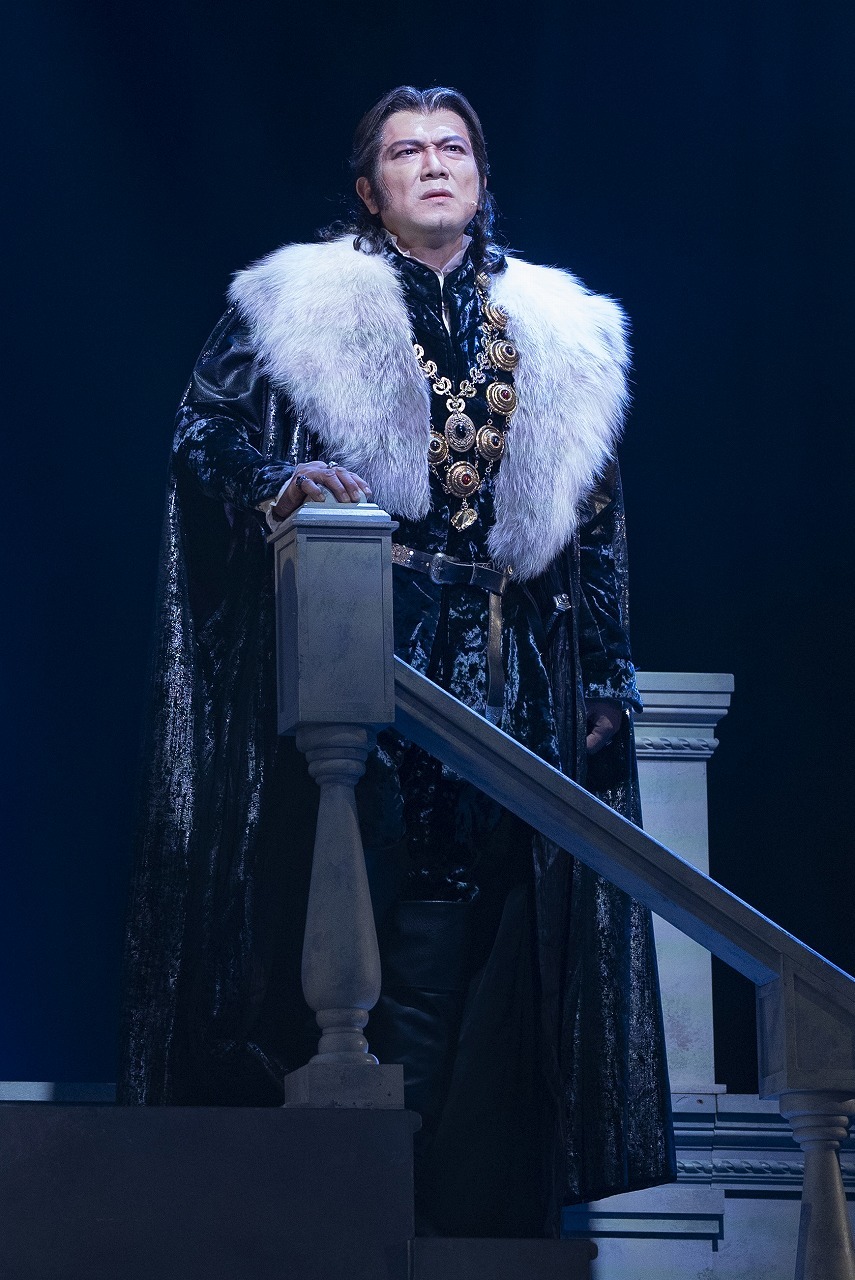 チェーザレが生まれる約200年前を生き、彼の思想に大きく影響を与えた重要人物であるダンテ・アリギエーリとハインリッヒ7世。二人は登場シーンこそ決して多くはないものの、強烈な印象を残していった。ルネサンスの先駆的存在の詩人・哲学者・政治家のダンテを演じた藤岡は、情念のこもった迫真の演技で客席を圧倒。ダンテが信頼した神聖ローマ帝国の皇帝ハインリッヒ7世を演じた横山は、神々しい歌声を劇場中に響かせた。時空を超えて彼らとチェーザレが存在する空間を生み出せるのは、ミュージカルならではの醍醐味かもしれない。