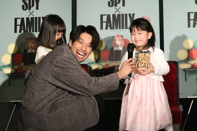 そして鈴木からも増田・福地に、やはりピーナツがプレゼントされた。増田は「家でバタピーをいつも食べていたので、こんな高級ピーナッツをもらえるなんて。食べたらもったいない。でも、食べたいです」。そして福地はプレゼントを恭しく受け取り、「アーニャの好きなピーナッツ、しかも こうきゅう!アーニャ、嬉しい。ちち、あざざます」と、すっかりアーニャさながらに、役になりきっていた。