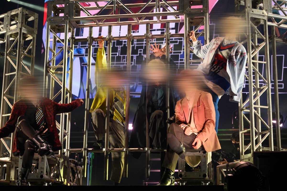 それぞれのイメージカラーを取り入れたカジュアルな衣装に着替えた5人が、ポップアップで勢いよくステージに現れたのは「Sweet Trap」。檻を使ってシアトリカルに魅せるというチャレンジをした「Jump!」、華麗なステッキダンスで彩る「Attention Lies」と、エンターテイナーぶりに拍車がかかっているではないか。