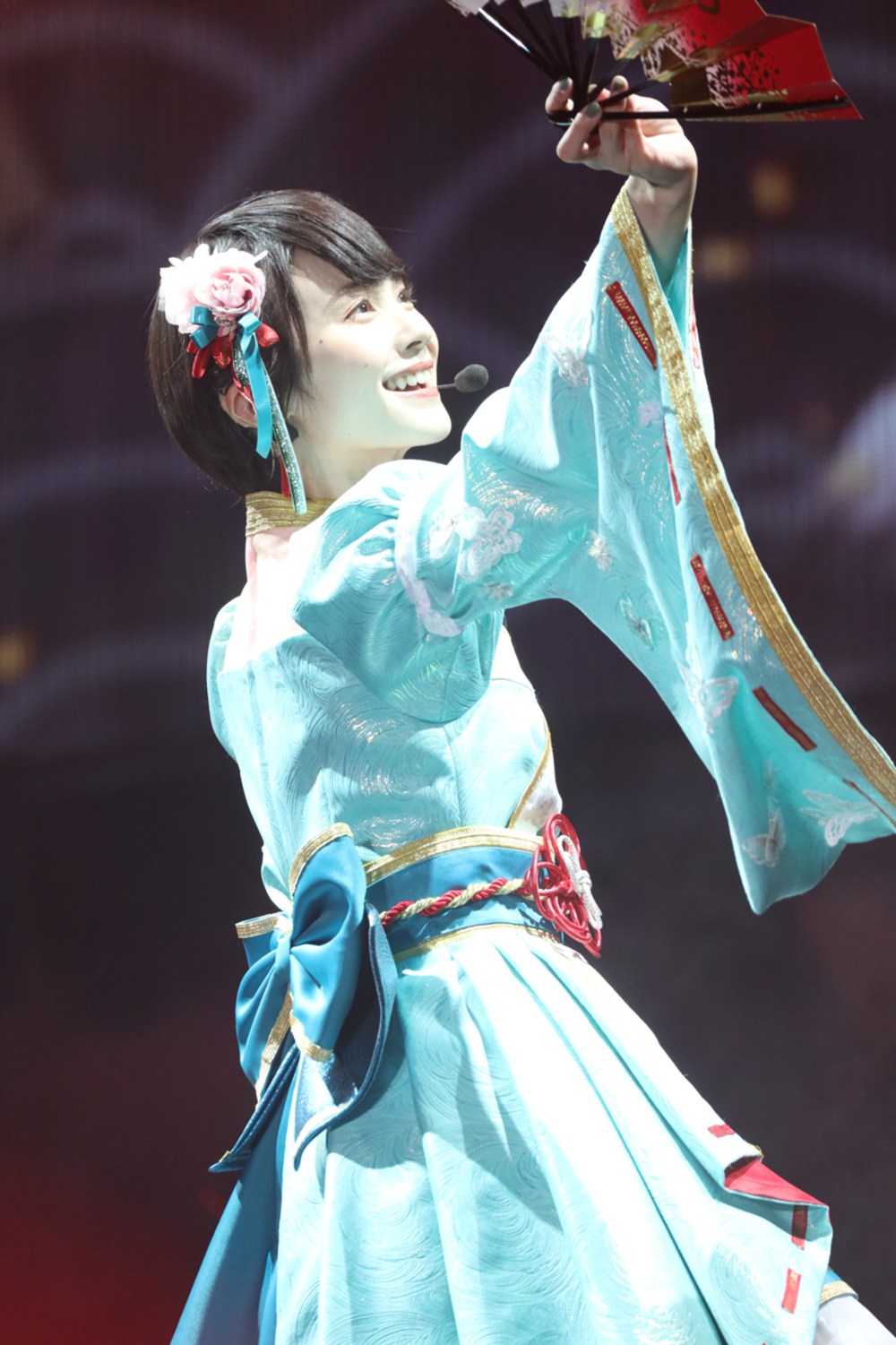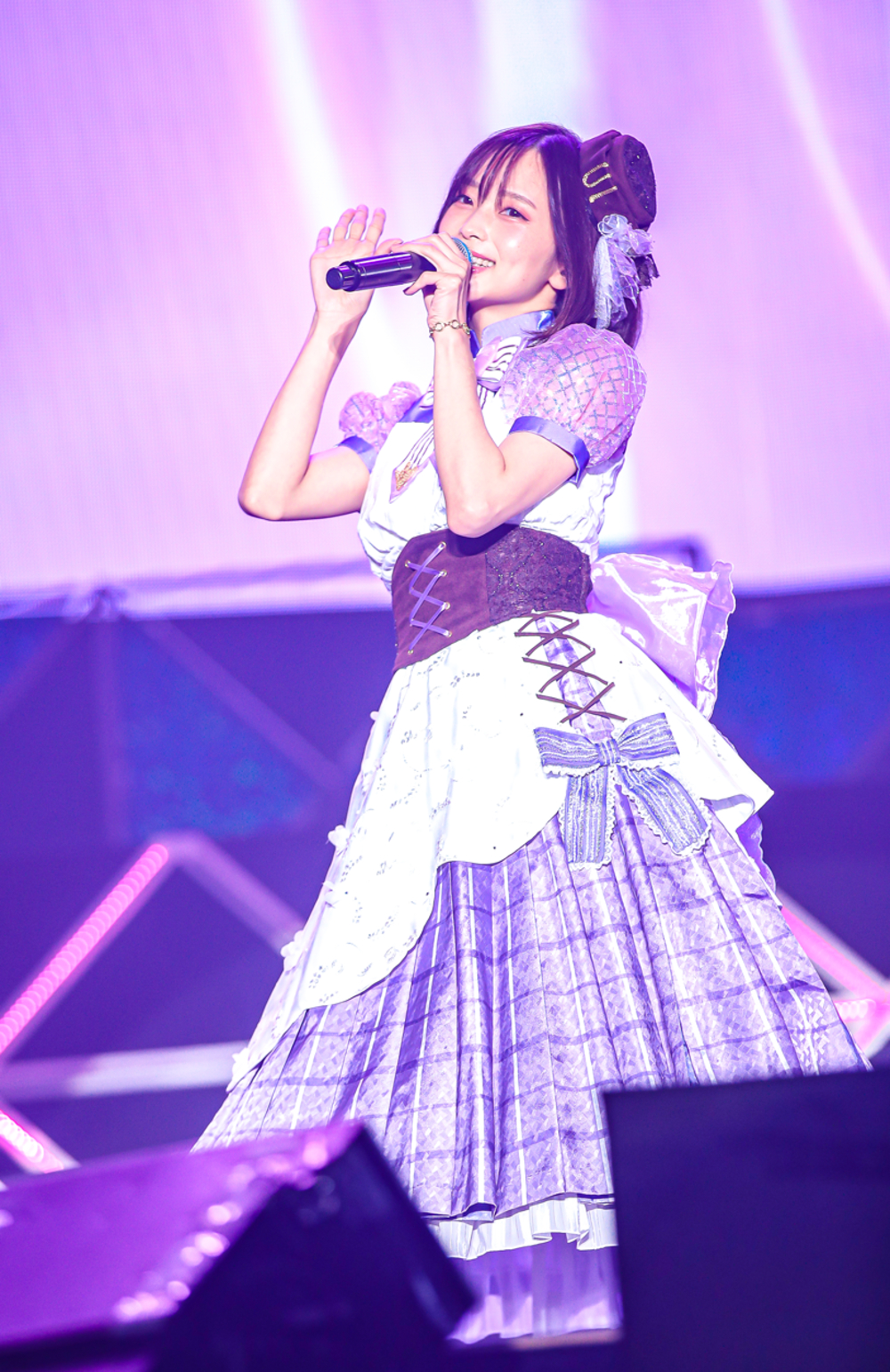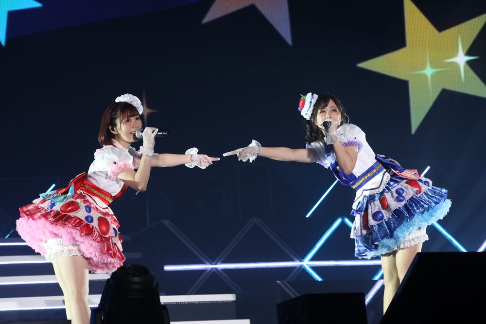 続いてもトロッコではる☆ジカ(ちいさな)が登場すると「SHAKE!!~フリフリしちゃえ~」を披露し、そのまま「ハネ☆る!!」と続ける。大きなステージを感じさせない、小さな2人による高いジャンプに応じてか、場内の手拍子の厚みがかなり増したように感じられた。「私たちの跳躍力、どうよ?」と語りかけると、5thの時のケーキをモチーフにした衣装にも触れ、元気いっぱいのステージを締めくくった。