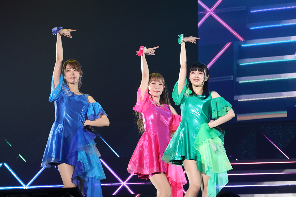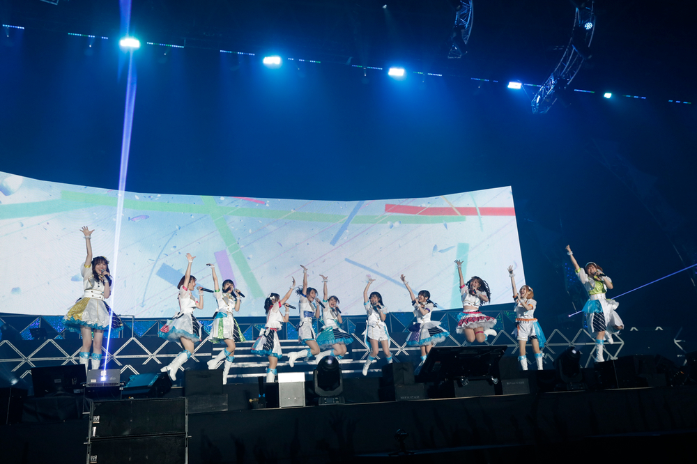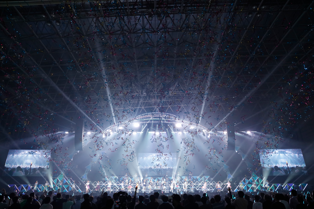 今回の物販のTシャツに着替えた、ナナスタシスターズによる「Make our sound」は、いよいよフィナーレ感が漂う。「皆さん、楽しかったですか?」「また、この先の未来でお会いしましょう!その願いを込めて、最後はみんなで!この曲を歌います!」と最後に今日の出演者、全員による「Along the way」を披露。銀テープが舞う中「最後はみんなで一緒に飛びましょう!せーのっ!」と幕張メッセを大きく揺らして、怒涛の初日は幕を閉じた。