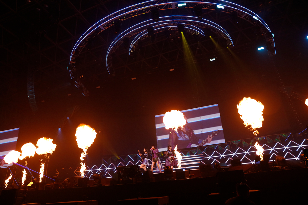 会場の幕張メッセでは、11ホールにて物販やフード、フォトスポットが朝9時からオープンしており、開演前から多くのファンで賑わっていた。ゲームチャレンジコーナーでは、ユーザーが好きな楽曲をステージ上でプレイしてライブへの熱を高めていたし、パンフレットの分厚さも読みごたえ満載すぎて、開演前にサクッと読めるレベルではなかった。演者や主催側はもちろんだが、何よりこの日を待ち望んでいたのはファンだったはず。コラボメニューのフードにも舌鼓を打ち、朝からいても楽しめる工夫が凝らされていたのが素晴らしかった。