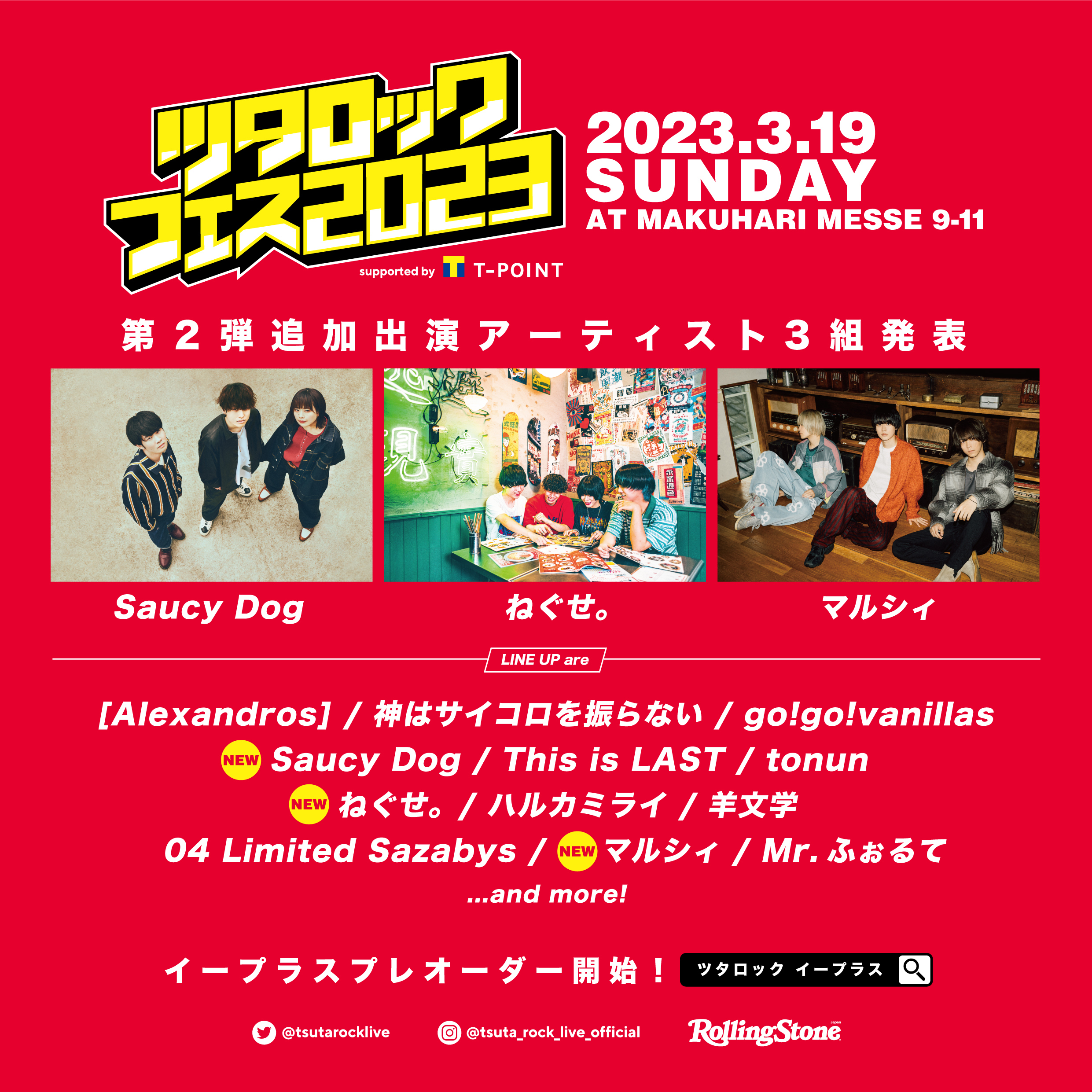 3月19日(日)に幕張メッセ国際展示場にて開催される『ツタロックフェス 2023 supported by Tポイント』の第二弾出演アーティストが発表された。