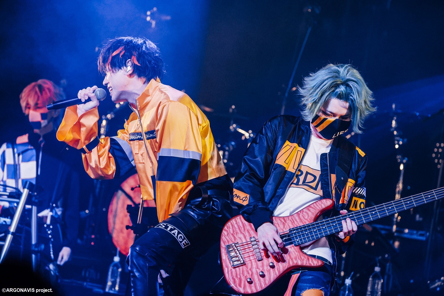 3曲を終え、まずは五稜結人から「皆さん、ハッピーニューイヤー!アルゴナビスです!」と新年の挨拶。「ここで自己紹介をさせてくれ!」の言葉に的場が続き、「皆さんあけましておめでとうございます!的場航海です!今年最初のライブも全力で行きます!」と意気込みを語る。「アルゴナビス、キーボード担当、桔梗凛生だ。FantômeIrisとεpsilonΦ、俺たちの音楽と彼らの音楽がぶつかり合って共鳴する、今日はそれを楽しみに来た。」と期待に胸を躍らせ、「年の初めから俺たちのライブに来てくれてありがとう!白石万浬です!」と感謝を述べる。「FantômeIrisやεpsilonΦとのライブ、今日という日を楽しみにしていました。一曲一曲を大切に歌います!」と蓮が締めると、優しいピアノ入りの「BLUE ALBUM」へ。