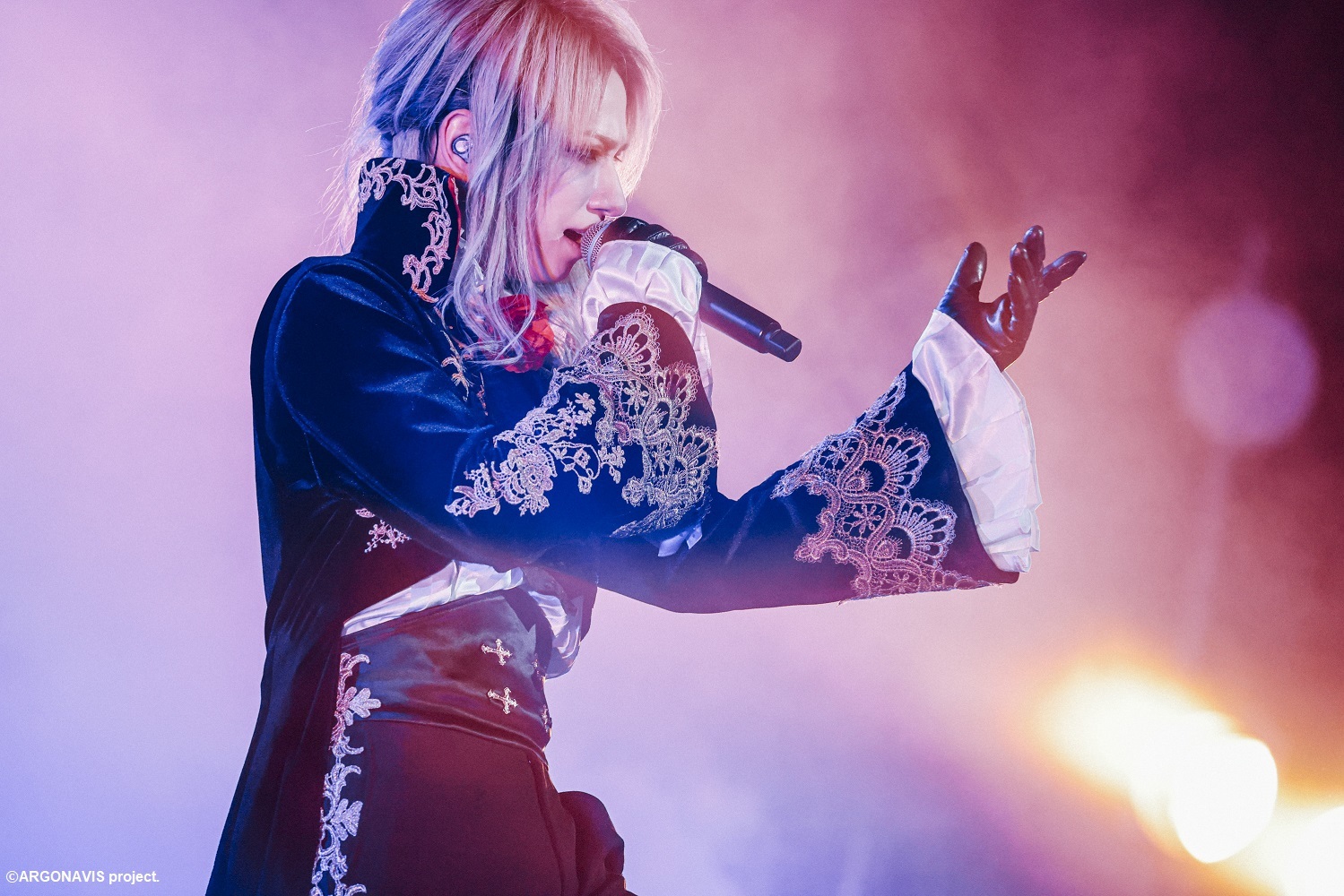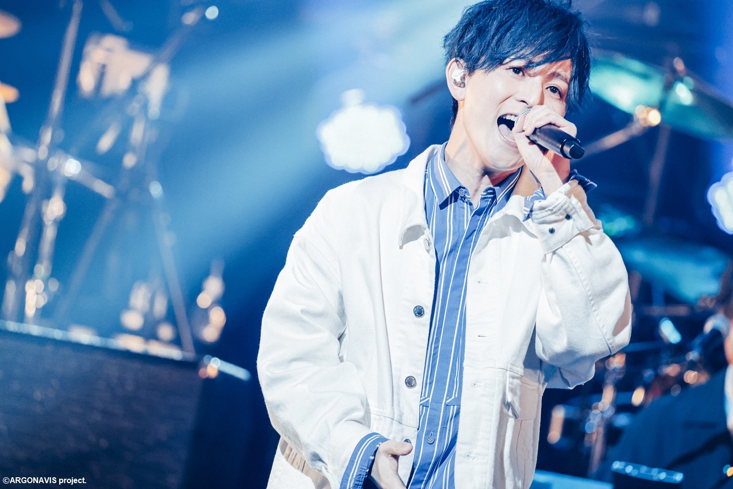 開場前から集まったファンの熱気は高く、実際に入場してみると、まるで並木路のようにズラリと両脇に並べられたフラスタの数に驚かされたし、会場全体を見渡せる席で観覧させて頂いたが超満員の観客で埋め尽くされていた。まるでこれから何かが天から舞い降りてきそうなハープとキラキラしたウインドチャームの幻想的な音色が聞こえてくると、Argonavisの5人が姿を現した。